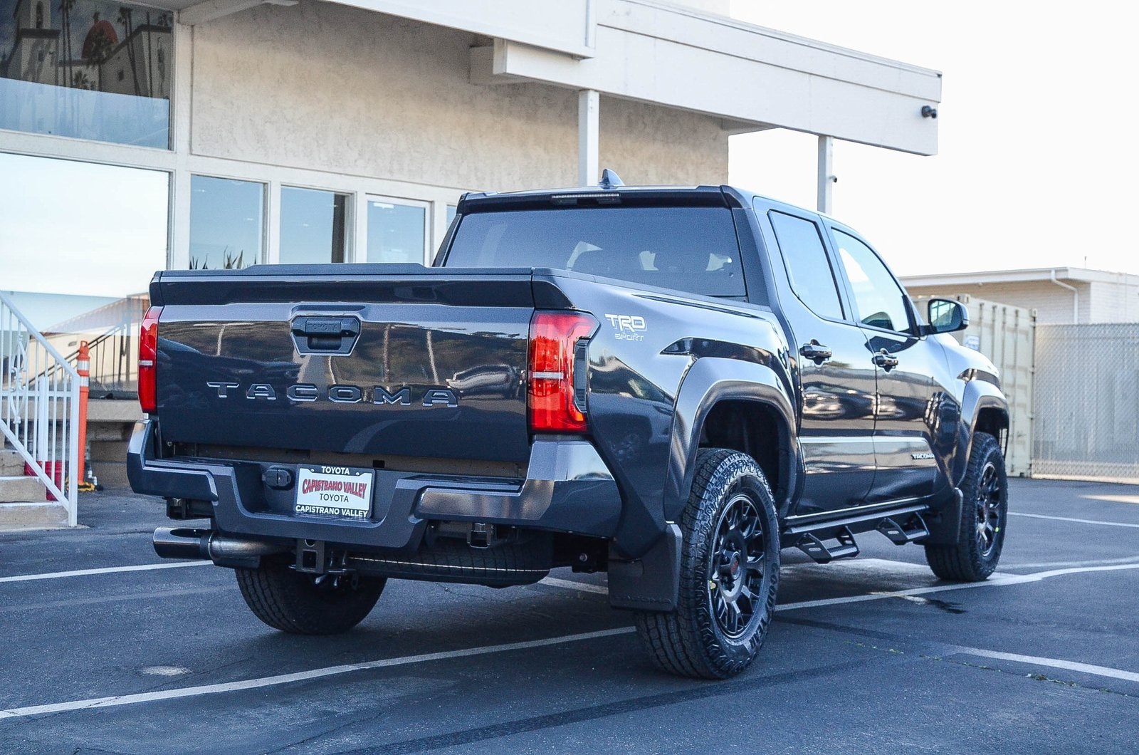 The 2026 Toyota Tacoma TRD Sport Double Cab in Underground features an i-FORCE 2.4L 4-cylinder turbo engine and rear-wheel drive. This truck is designed for rugged style and capability, with a bold exterior and a comfortable, functional interior. The TRD Sport Package includes features such as alloy wheels, a spray-on bedliner, and a predator drop step, all designed to complement the Tacoma's off-road heritage.