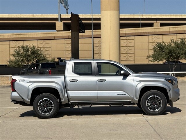 The 2026 Toyota Tacoma 2WD TRD Sport is a testament to performance and style, designed for those who crave adventure without sacrificing comfort. Beneath its Celestial Silver Metallic exterior, this truck boasts a turbocharged 4-cylinder engine paired with an 8-speed automatic transmission, offering a seamless driving experience whether you're navigating city streets or hitting the open road. Its rear-wheel drive and brake actuated limited slip differential ensure precision handling and stability, making every drive a pleasure. Safety is paramount with features like a Blind Spot Monitor, Front Collision Mitigation, and Lane Keeping Assist, providing peace of mind on every journey. The Tacoma's adaptive cruise control and smart device integration enhance your driving experience, while the back-up camera and cross-traffic alert add an extra layer of convenience and safety. Inside, the Tacoma offers a spacious crew cab with bucket seats and driver adjustable lumbar support, ensuring comfort for all passengers. The aluminum wheels and all-season tires are ready for any terrain, while the tow hitch and tow hooks make it easy to bring along your gear. The 2026 Tacoma 2WD TRD Sport is more than just a truck; it's your partner in exploration. Be sure to call or visit Toyota of Dallas to discover more. Your new favorite vehicle awaits - don't let someone else drive it home!