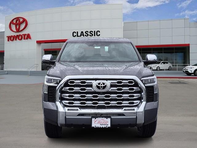 The 2026 Toyota Tundra 1794 Edition CrewMax 4-Wheel Drive features a Magnetic Gray Metallic exterior and a Tan interior. Powered by an i-FORCE V6 Engine, it offers a premium driving experience with a focus on comfort and safety. The vehicle features a 10-speed transmission with sequential shift, and the transmission type is automatic. The Tundra is equipped with advanced safety features, including Toyota Safety Sense 2.5, and a panoramic view monitor. The bed is made of aluminum-reinforced composite, and the vehicle is designed for both comfort and capability.