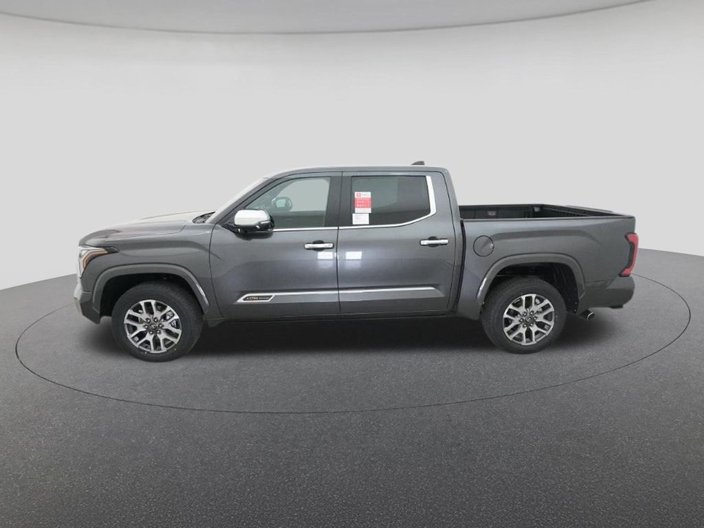 The 2026 Toyota Tundra 1794 Edition CrewMax features a Magnetic Gray Metallic exterior and Saddle Tan interior. Powered by an i-FORCE V6 Engine, it offers a comfortable and technologically advanced driving experience. The truck is equipped with premium features such as a panoramic view monitor, multi-function massaging front seats, and a power running bed. Safety is prioritized with Toyota Safety Sense 2.5, including Pre-Collision System, Dynamic Radar Cruise Control, and Lane Departure Alert. This new Tundra is designed for both everyday comfort and off-road capability.