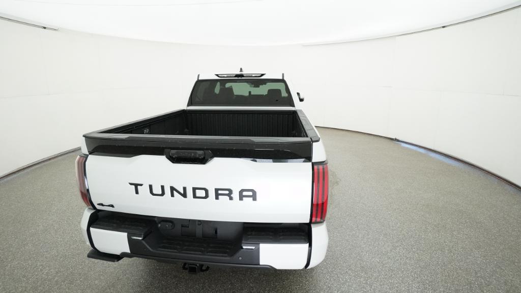 The 2026 Toyota Tundra Platinum CrewMax 4-Wheel Drive features a Wind Chill Pearl exterior and a black interior. Powered by an i-FORCE V6 engine, this truck offers a comfortable and technologically advanced cabin, including multi-function massaging front seats, a panoramic view monitor, and a premium JBL audio system. The vehicle is designed for both everyday driving and off-road adventures, with features like a bed liner, trailer backup guide system, and advanced safety technologies.