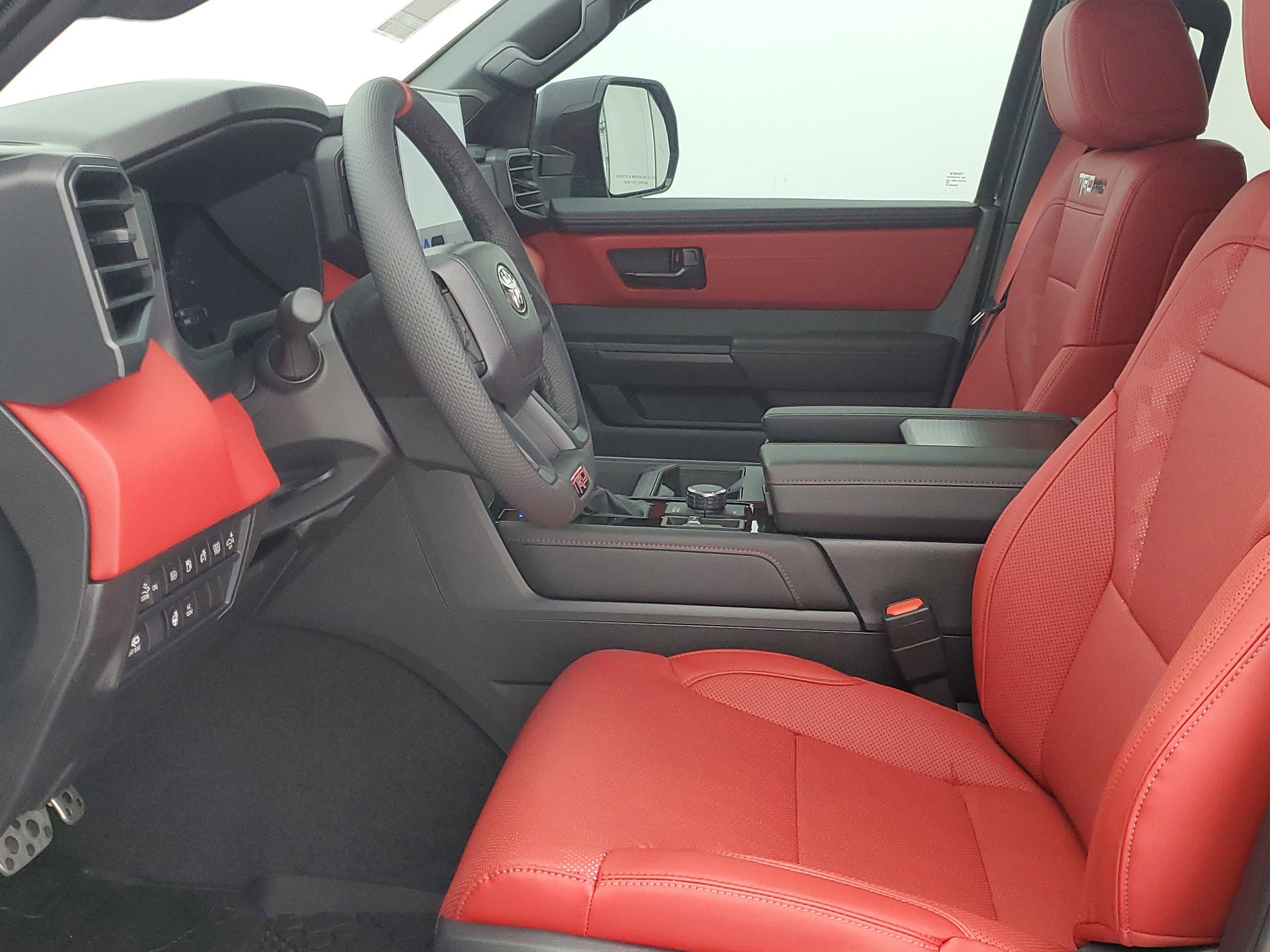 The 2026 Toyota Tundra TRD Pro CrewMax features an i-FORCE MAX V6 Hybrid Engine, offering a blend of power and efficiency. With a Magnetic Gray Metallic exterior and Red interior, this new model is designed for both performance and comfort. It includes advanced features and off-road capabilities, making it a versatile choice for a variety of driving needs.