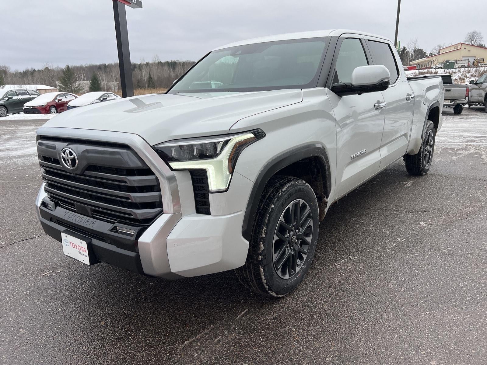The 2026 Toyota Tundra Limited is in stock at LeadCar Toyota Wausau. This CrewMax model features a turbocharged i-FORCE V6 engine, four wheel drive, and a range of premium packages including a towing package, panoramic view monitor, and wireless smartphone charging. The vehicle offers a comfortable interior with leather-trimmed seats, dual zone automatic climate control, and advanced safety features. Please reference the window sticker for more information about final vehicle configuration.