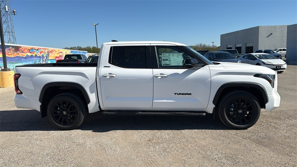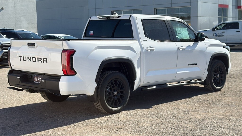 2026 Toyota Tundra Limited in White comes with the following features: 3.4L V6 10-Speed Automatic RWD Limited Premium Package (High Grade Full LED Headlamp), Nightshade Package (Wheels: 20" x 8J Matte Black TRD Sport Style), Panoramic View Monitor Package (Panoramic View Back Monitor), Power Package (400W/120V AC Deck and Cabin Power Supply and Qi-Compatible Wireless Charger), Towing Package, Boulder Leather, 12 JBL Speakers, 20" x 8J Alloy Wheels, 3.31 Axle Ratio, 4-Wheel Disc Brakes, 9 Speakers, ABS brakes, Air Conditioning, Alloy wheels, AM/FM Radio, AM/FM radio: SiriusXM, Apple CarPlay/Android Auto, Auto High-beam Headlights, Auto-dimming door mirrors, Auto-dimming Rear-View mirror, Automatic temperature control, Bed Step, Black Dual-Step Running Board, Blind Spot Monitor, Brake assist, Bumpers: body-color, Carpet Floor Mats, Delay-off headlights, Driver door bin, Driver vanity mirror, Dual front impact airbags, Dual front side impact airbags, Electronic Stability Control, Emergency communication system: Safety Connect (up to 10-year trial subscription), Exterior Parking Camera Rear, Front anti-roll bar, Front Bucket Seats, Front Center Armrest, Front dual zone A/C, Front fog lights, Front reading lights, Front wheel independent suspension, Fully automatic headlights, Garage door transmitter: HomeLink, Heated and Ventilated Front Bucket Seats, Heated Color-Keyed Outside Mirrors, Heated door mirrors, Heated front seats, Heated Leather Steering Wheel, Illuminated entry, Knee airbag, Leather Seat Trim, Leather Shift Knob, Leather steering wheel, Low tire pressure warning, Memory seat, Navigation system: Drive Connect Cloud Navigation (1-year trial subscription), Occupant sensing airbag, Outside temperature display, Overhead airbag, Overhead console, Panic alarm, Panoramic Sunroof and Moonroof, Passenger door bin, Passenger vanity mirror, Power door mirrors, Power driver seat, Power Folding Color-Keyed Outside Mirrors, Power passenger seat, Power steering, Power windows, Radio data system, Rear reading lights, Rear seat center armrest, Rear step bumper, Rear window defroster, Remote keyless entry, Security system, Speed control, Speed-sensing steering, Split folding rear seat, Steering wheel mounted audio controls, Tachometer, Telescoping steering wheel, Tilt steering wheel, Traction control, Trip computer, Turn signal indicator mirrors, Variably intermittent wipers, Ventilated front seats.