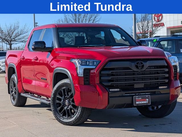 Includes wireless Apple CarPlay and Android Auto, satellite radio and Bluetooth audio streaming, Amazon Alexa, 2 USB chargeports, Toyota Safety Sense, pre-collision system, star safety system (VSC, TRAC, ABS, EBD, BA, SST), pre-collision system with pedestrian detection, dynamic radar cruise control, lane departure alert with steering assist, automatic high beams, Bluetooth/hands free cell phone, rear backup camera. 2 years free maintenance included on all new Toyotas. 2026 Toyota Tundra Limited Red RWD 10-Speed Automatic. Price(s) excludes dealer installed equipment, $225 documentary fee, licensing costs, registration fees and taxes.