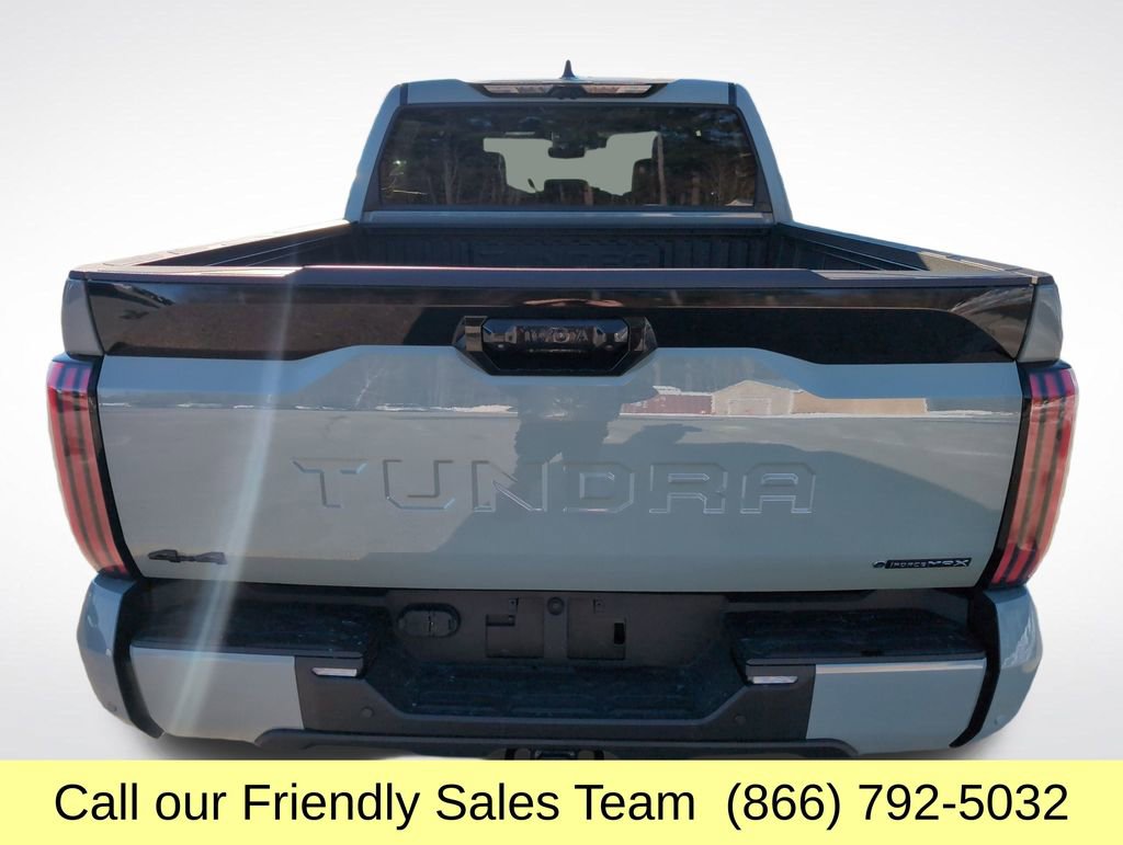 The 2026 Toyota Tundra Hybrid Limited features a 3.4 L i-FORCE MAX twin-turbo hybrid V6 with up to ~437 hp/583 lb-ft, a 10-speed automatic transmission, rear-wheel drive (4WD available) with up to 11,450 lb towing and ~1,665 lb payload, 18-inch alloy wheels, LED headlights, an 8- to 14-inch touchscreen with Apple CarPlay & Android AutoPlay, adaptive cruise control, backup camera and more. The vehicle is in the process of the dealership's configuration.