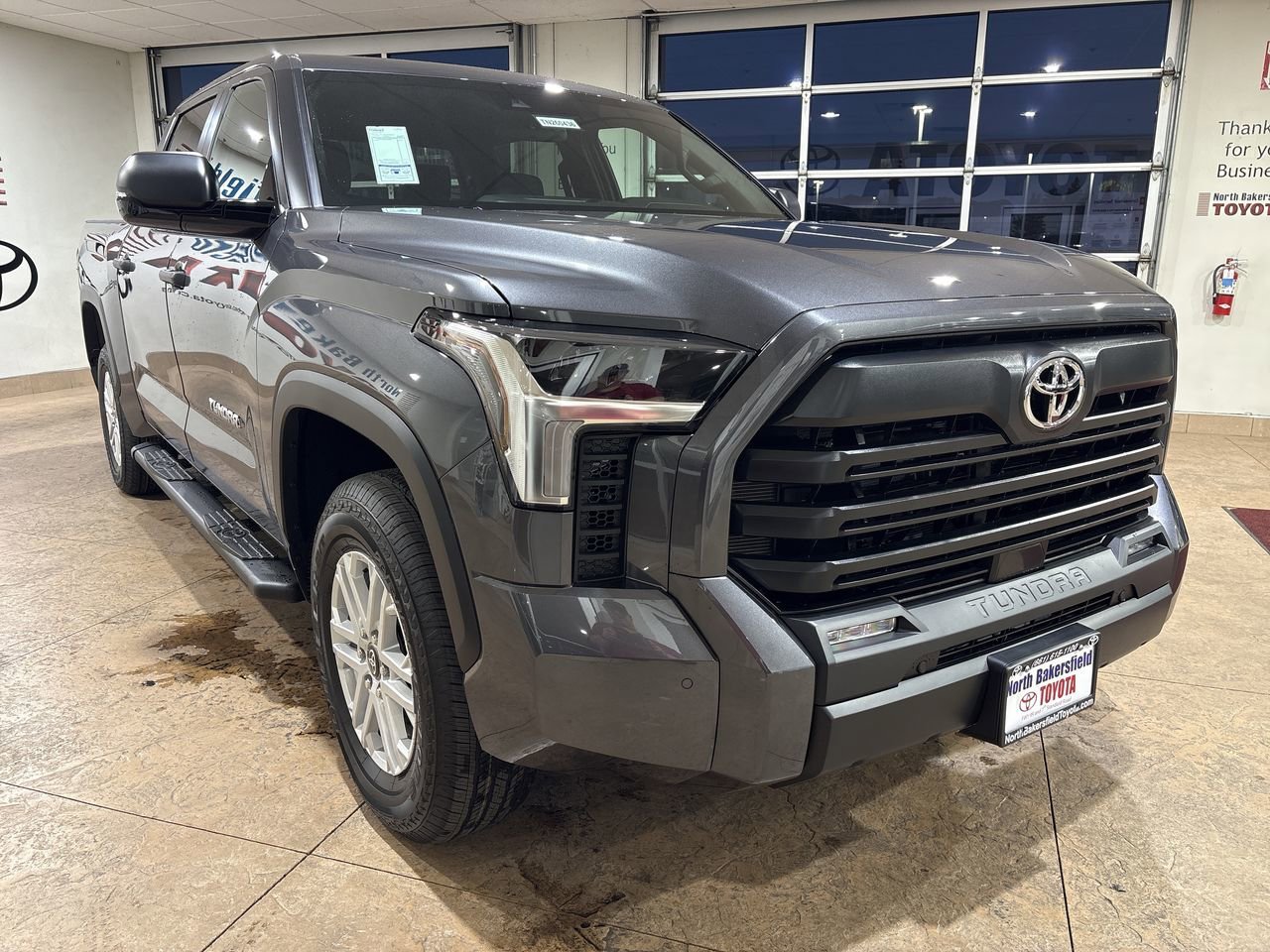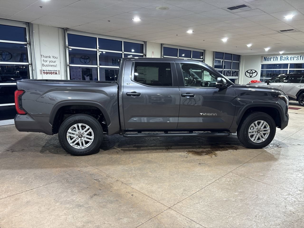 The 2026 Toyota Tundra SR5 CrewMax 4-Wheel Drive features a powerful i-FORCE V6 Engine and a 10-speed electronically controlled automatic transmission with intelligence and sequential shift mode. This truck offers a comfortable interior with fabric-trimmed seats, an 8-way power-adjustable driver's seat, and a single-zone automatic climate control. The exterior is finished in Magnetic Gray Metallic, complemented by alloy wheels, LED headlights, and a stainless steel exhaust system. Safety features include Toyota Safety Sense 2.5, Pre-Collision System with Pedestrian Detection, Full-Speed Range Dynamic Radar Cruise Control, Lane Departure Alert with Steering Assist, Lane Tracing Assist, Automatic High Beams, Road Sign Assist, and more.