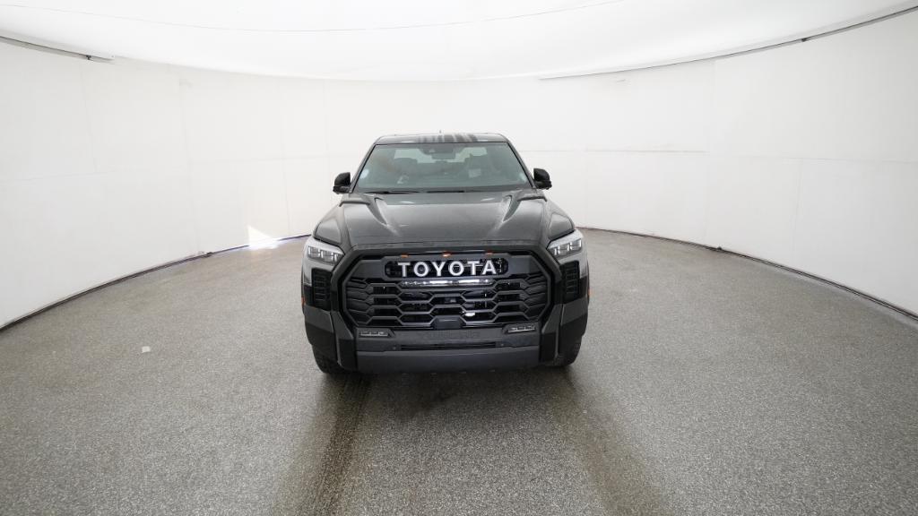 The 2026 Toyota Tundra TRD Pro CrewMax 4-Wheel Drive features a Midnight Black Metallic exterior and a black interior. Powered by the i-FORCE MAX V6 Hybrid Engine, it offers a blend of power and efficiency. The vehicle is equipped with advanced technology and off-road features, making it suitable for both driving and challenging conditions.
