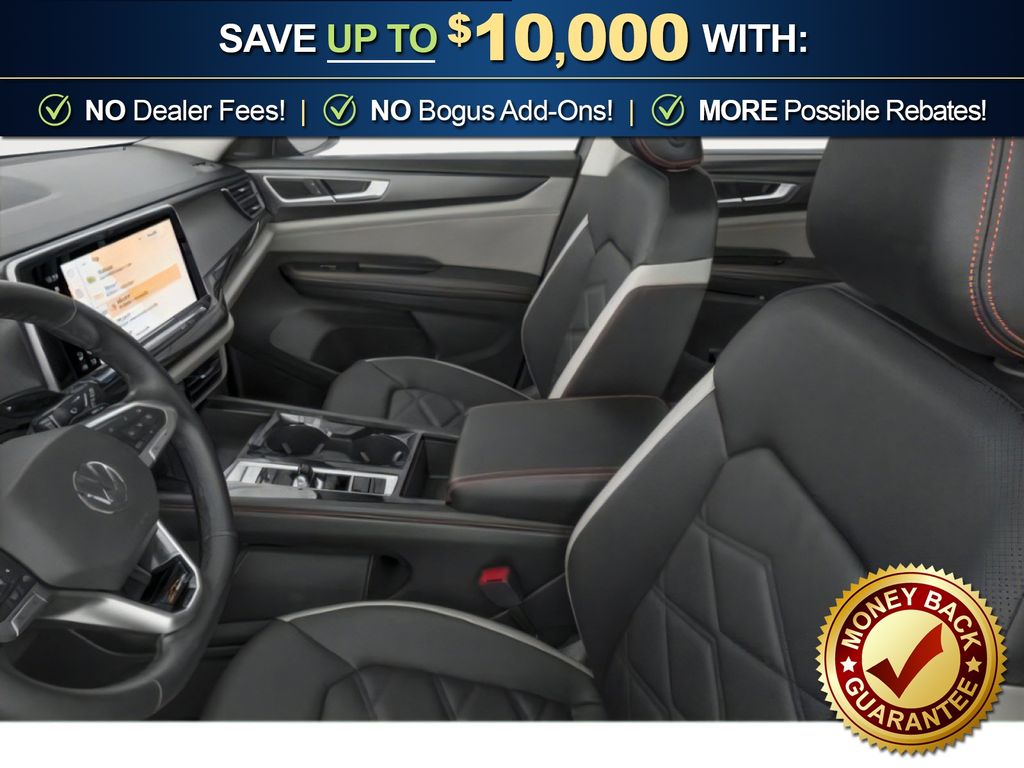 2026 Volkswagen Atlas 2.0T Peak Edition NVT AWD 8-Speed Automatic with Tiptronic 2.0L TSI 3rd row seats: split-bench, 4-Wheel Disc Brakes, 4-Wheel Independent Suspension, 6 Speakers, ABS brakes, Air Conditioning, Alloy wheels, AM/FM radio: SiriusXM with 360L, Auto High-beam Headlights, Auto-dimming Rear-View mirror, Automatic temperature control, Brake assist, Bumpers: body-color, Compass, Delay-off headlights, Driver door bin, Driver vanity mirror, Dual front impact airbags, Dual front side impact airbags, Electronic Stability Control, Emergency communication system: VW Car-Net Safe & Secure 5-year, Exterior Parking Camera Rear, Four wheel independent suspension, Front anti-roll bar, Front Bucket Seats, Front Center Armrest, Front dual zone A/C, Front fog lights, Front reading lights, Fully automatic headlights, Garage door transmitter: Homelink, Heated and Actively Ventilated Front Bucket Seats, Heated door mirrors, Heated front seats, Heated steering wheel, Illuminated entry, Low tire pressure warning, Occupant sensing airbag, Outside temperature display, Overhead airbag, Overhead console, Panic alarm, Passenger door bin, Passenger vanity mirror, Perforated V-Tex Leatherette Seating Surfaces, Power door mirrors, Power driver seat, Power Liftgate, Power moonroof: Panoramic, Power steering, Power windows, Radio data system, Radio: MIB3 Composition Media, Rain sensing wipers, Rear air conditioning, Rear anti-roll bar, Rear reading lights, Rear seat center armrest, Rear window defroster, Rear window wiper, Remote keyless entry, Security system, Speed control, Speed-sensing steering, Split folding rear seat, Spoiler, Steering wheel mounted audio controls, Tachometer, Telescoping steering wheel, Tilt steering wheel, Traction control, Trip computer, Turn signal indicator mirrors, Variably intermittent wipers, Ventilated front seats.