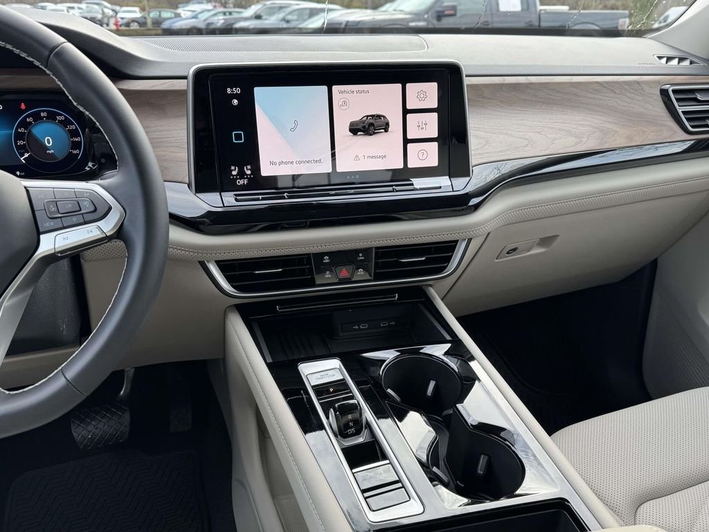 2026 Volkswagen Atlas 2.0T SE w/Technology Black Wheel Package (Wheels: 20" Multi-Spoke Black Painted Alloy), 3rd row seats: split-bench, 4-Wheel Disc Brakes, 4-Wheel Independent Suspension, 6 Speakers, ABS brakes, Air Conditioning, Alloy wheels, AM/FM radio: SiriusXM with 360L, Auto High-beam Headlights, Auto-dimming Rear-View mirror, Automatic temperature control, Brake assist, Bumpers: body-color, Compass, Delay-off headlights, Driver door bin, Driver vanity mirror, Dual front impact airbags, Dual front side impact airbags, Electronic Stability Control, Emergency communication system: VW Car-Net Safe & Secure 5-year, Exterior Parking Camera Rear, First Aid Kit, Four wheel independent suspension, Front anti-roll bar, Front Bucket Seats, Front Center Armrest, Front dual zone A/C, Front fog lights, Front reading lights, Fully automatic headlights, Garage door transmitter: HomeLink, Heated & Actively Ventilated Front Bucket Seats, Heated door mirrors, Heated front seats, Heated steering wheel, Illuminated entry, Low tire pressure warning, Occupant sensing airbag, Outside temperature display, Overhead airbag, Overhead console, Panic alarm, Passenger door bin, Passenger vanity mirror, Perforated V-Tex Leatherette Seating Surfaces, Power door mirrors, Power driver seat, Power Liftgate, Power steering, Power windows, Radio data system, Radio: MIB3 Composition Media, Rain sensing wipers, Rear air conditioning, Rear anti-roll bar, Rear reading lights, Rear seat center armrest, Rear window defroster, Rear window wiper, Remote keyless entry, Security system, Speed control, Speed-sensing steering, Split folding rear seat, Spoiler, Steering wheel mounted audio controls, Tachometer, Telescoping steering wheel, Tilt steering wheel, Traction control, Trip computer, Turn signal indicator mirrors, Variably intermittent wipers, Ventilated front seats, Volkswagen Logo Puddle Lights, VW Care.