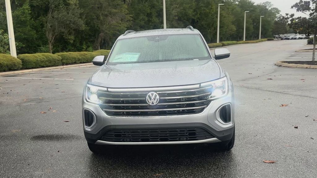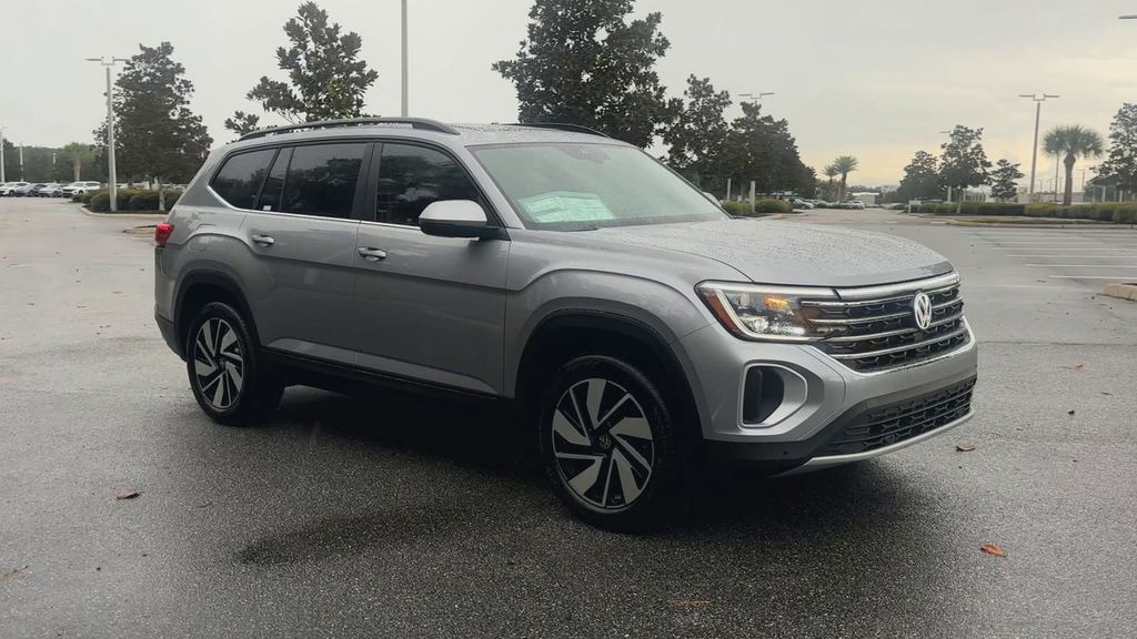 Recent Arrival! 2026 Volkswagen Atlas 2.0T SE w/Technology Silver FWD 8-Speed Automatic with Tiptronic 2.0L TSI. 3rd row seats: split-bench, 4-Wheel Disc Brakes, 6 Speakers, ABS brakes, Air Conditioning, Alloy wheels, AM/FM radio: SiriusXM with 360L, Auto High-beam Headlights, Auto-dimming Rear-View mirror, Automatic temperature control, Brake assist, Bumpers: body-color, Compass, Delay-off headlights, Driver door bin, Driver vanity mirror, Dual front impact airbags, Dual front side impact airbags, Electronic Stability Control, Emergency communication system, Exterior Parking Camera Rear, Four wheel Independent Suspension.