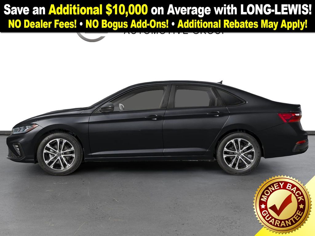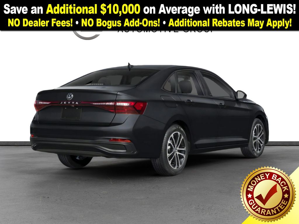 Deep Black Pearl Metallic 2026 Volkswagen Jetta 1.5T Sport FWD 8-Speed Automatic with Tiptronic 1.5L I-4 DI DOHC Turbocharged Titan Black Cloth, 4 Speakers, 4-Wheel Disc Brakes, ABS brakes, Active Blind Spot Monitor, Air Conditioning, Alloy wheels, Auto-dimming Rear-View mirror, Automatic temperature control, Brake assist, Bumpers: body-color, Cloth Seat Trim, Delay-off headlights, Driver door bin, Driver vanity mirror, Dual front impact airbags, Dual front side impact airbags, Electronic Stability Control, Emergency communication system: VW Car-Net Safe & Secure 5-year, Exterior Parking Camera Rear, Front anti-roll bar, Front Bucket Seats, Front Center Armrest, Front dual zone A/C, Front wheel independent suspension, Fully automatic headlights, Heated door mirrors, Heated Front Seats, Heated front seats, Illuminated entry, Leather Shift Knob, Leather steering wheel, Low tire pressure warning, Occupant sensing airbag, Outside temperature display, Overhead airbag, Overhead console, Panic alarm, Passenger door bin, Passenger vanity mirror, Power door mirrors, Power steering, Power windows, Radio data system, Radio: MIB3 Composition Color w/8" Touchscreen, Rain sensing wipers, Rear anti-roll bar, Rear reading lights, Rear seat center armrest, Rear window defroster, Remote keyless entry, Speed control, Speed-sensing steering, Split folding rear seat, Steering wheel mounted audio controls, Tachometer, Telescoping steering wheel, Tilt steering wheel, Traction control, Trip computer, Variably intermittent wipers, Wheels: 17" 2-Tone Machined Alloy.