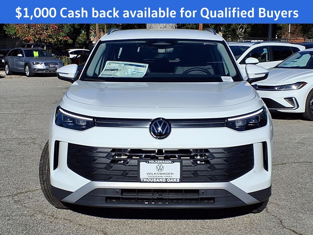 Thank you for choosing Volkswagen Thousand Oaks, one of 9 dealerships in the Browning Auto Group. Please contact us at 805-497-9404 or on the web at www.vwthousandoaks.com. Proudly serving Thousand Oaks, Ventura, Los Angeles, Simi Valley, Oxnard, Calabasas, Malibu, Santa Barbara, San Fernando. Price excludes dealer added options and equipment. 2026 Volkswagen Tiguan 2.0T SE Pure White Buyer must meet certain conditions to qualify. See dealer for details. Price Includes: $1000 - Retail Customer Bonus. Exp. 02/02/2026.