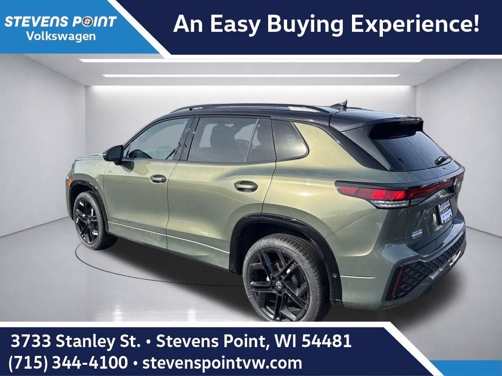 Recent Arrival! 2026 Volkswagen Tiguan 2.0T SE R-Line Black 4D Sport Utility AWD 8-Speed Automatic 2.0L TSI DOHC Avocado Green w/Deep Black Roof AWD, 4-Wheel Disc Brakes, 4-Wheel Independent Suspension, 7 Speakers, ABS brakes, Air Conditioning, Alloy wheels, AM/FM radio: SiriusXM with 360L, Auto High-beam Headlights, Auto-dimming Rear-View mirror, Auto-Dimming Rearview Mirror with HomeLink, Automatic temperature control, Brake assist, Bumpers: body-color, Compass, Delay-off headlights, Driver door bin, Driver vanity mirror, Dual front impact airbags, Dual front side impact airbags, Electronic Stability Control, Emergency communication system, Exterior Parking Camera Rear, Four wheel independent suspension, Front anti-roll bar, Front Bucket Seats, Front Center Armrest, Front dual zone A/C, Front reading lights, Fully automatic headlights, Handsfree Smart Power Liftgate, Heads-Up Display, Heated door mirrors, Heated Front Seats, Heated front seats, Heavy Duty Trunk Liner with VW CarGo Blocks, Illuminated entry, Knee airbag, Leather Shift Knob, Leather steering wheel, Low tire pressure warning, Occupant sensing airbag, Outside temperature display, Overhead airbag, Overhead console, Panic alarm, Passenger door bin, Passenger vanity mirror, Perforated V-Tex Leatherette Seating Surfaces, Power door mirrors, Power driver seat, Power moonroof: Panoramic, Power steering, Power windows, Radio data system, Radio: MIB4 Composition Media Touchscreen with AM/FM, Rain sensing wipers, Rear anti-roll bar, Rear reading lights, Rear seat center armrest, Rear side impact airbag, Rear window defroster, Rear window wiper, Remote keyless entry, Rubber Monster Mats Kit (set of 4), Security system, Speed control, Speed-sensing steering, Split folding rear seat, Spoiler, Sport steering wheel, Steering wheel mounted audio controls, Tachometer, Telescoping steering wheel, Tilt steering wheel, Traction control, Trip computer, Turn signal indicator mirrors, Variably intermittent wipers.