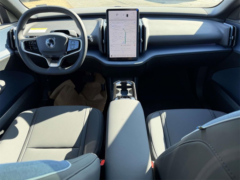 The 2026 Volvo EX30 Single Motor Plus is a new all-electric SUV in transit at Volvo Cars Richmond. This fully electric vehicle features a dynamic and agile driving experience with a comfortable yet rewarding ride. The interior is designed for a contemporary look and feel, with a sporty studio-inspired aesthetic. The exterior is distinctive with a high-gloss black finish and a panoramic roof that adds new dimensions of airiness and light. Advanced safety features and technology are integrated for a safe and connected driving experience.