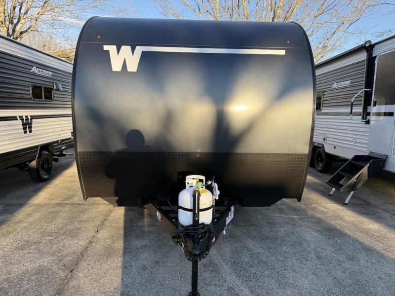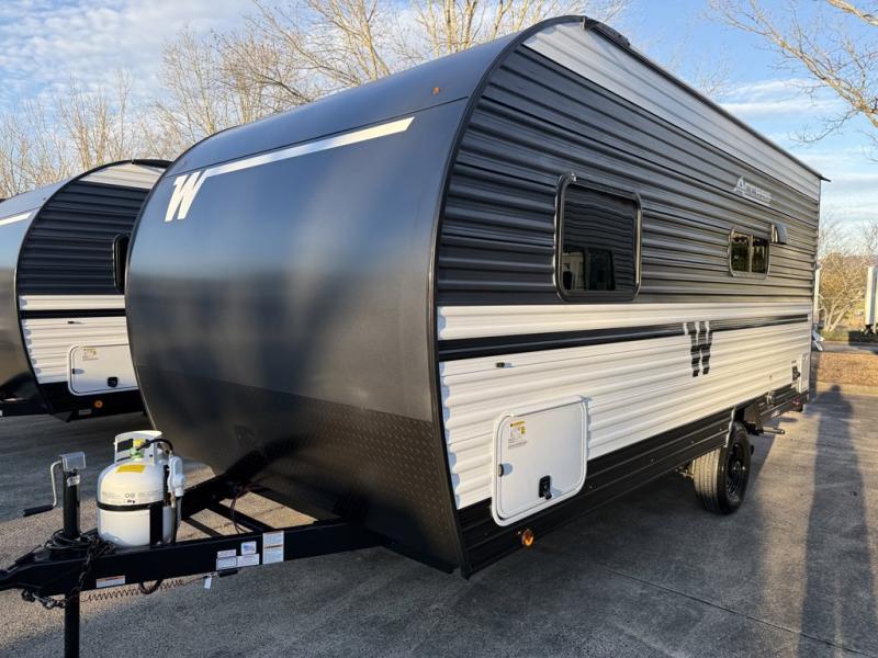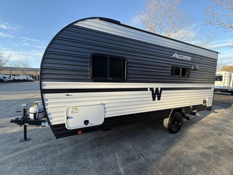 Winnebago Access travel trailer 15RB highlights: Front RV Queen Bed, Booth Dinette, Single Axle, Exterior Baggage Doors. This is the perfect couple's trailer or for those who enjoy solo camping. Once you've unloaded the exterior baggage doors, you can put out the 12' awning, then head inside to make lunch on the two-burner cooktop. There is also a microwave oven and a 3.3 cu. ft. 12V refrigerator for perishables. A booth dinette will provide a place to enjoy your meal at, and an additional guest can sleep here if need be. After a day of exploring outdoors, you can freshen up in the full rear bath that includes a 30" x 36" shower with a skylight and a linen closet for clean towels! With any Winnebago Access travel trailer you will find thoughtful, clean, and contemporary designs filled with premium features that all have come to expect on any Winnebago towable. There are single and tandem axle models available, each with superior storage, durable construction, and spacious interiors. The functional galley kitchen will make time at the campground easier than ever, and the stylish roller shades will provide privacy and shade when you need it!