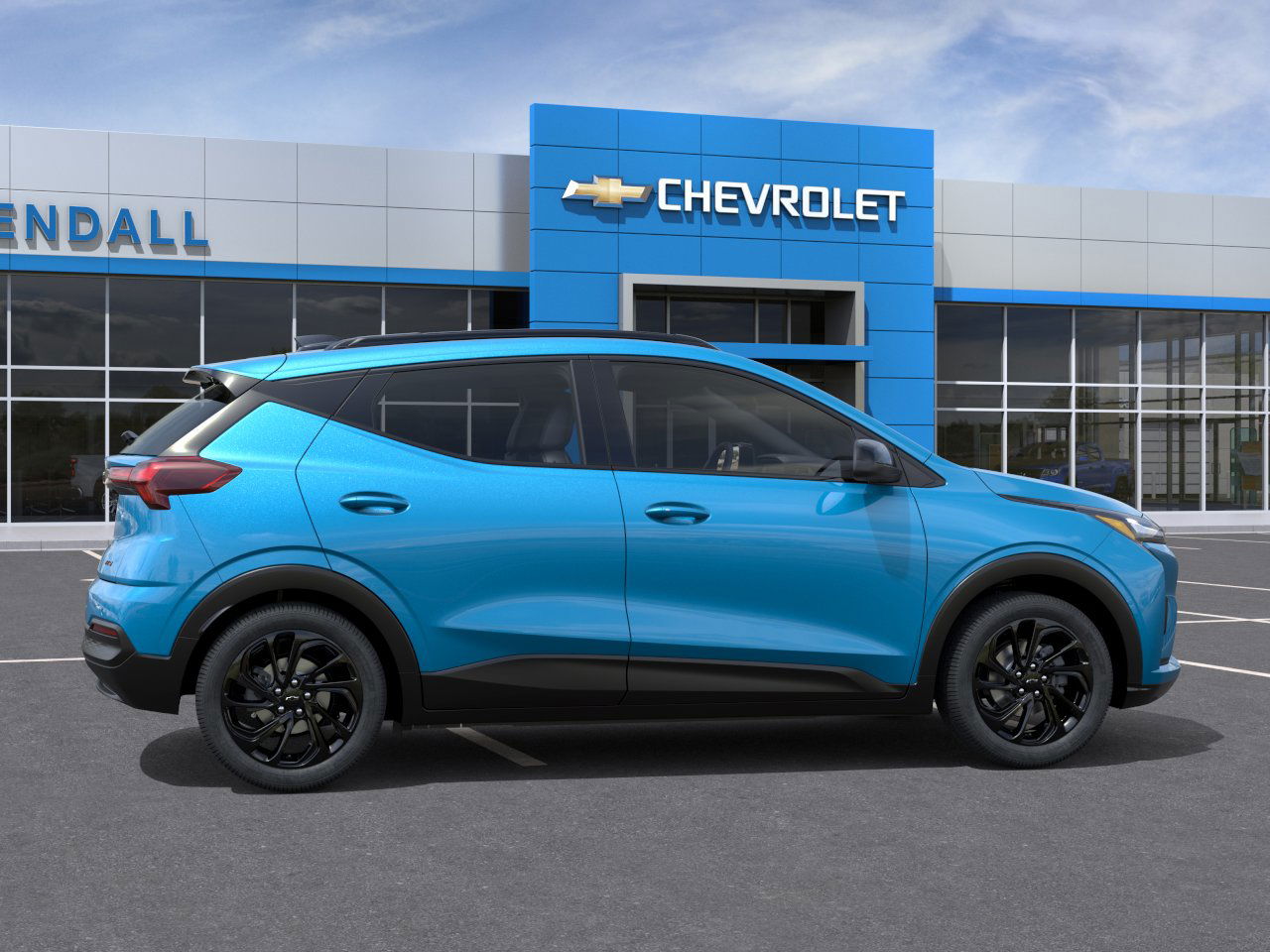 The 2027 Chevrolet Bolt RS is a new all-electric SUV with a Marina Blue Metallic exterior and a Jet Black interior with Red stitching. It features an integral drive unit with electric propulsion, offering an estimated range of 262 miles. The vehicle is equipped with advanced safety features, a panoramic sunroof, and a technology package that includes Google built-in, wireless phone charging, and more.