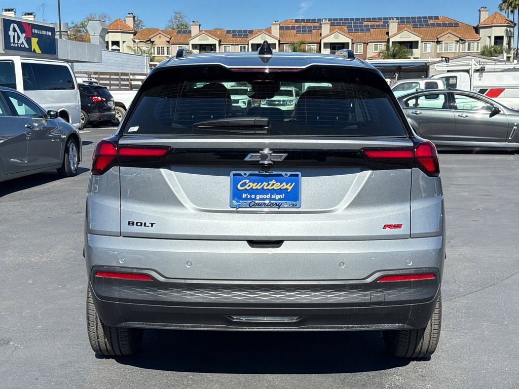 The 2027 Chevrolet Bolt RS is a new all-electric SUV featuring a front wheel drive system and an integral drive unit with electric propulsion. It offers advanced safety features, a spacious interior with seating for five, and a range of up to 255 miles on a full charge. The vehicle is equipped with a 65 kWh battery and dual Level Charge Cord for flexible charging options. The exterior is Sterling Grey Metallic, while the interior features Jet Black with Red stitching. This model is currently in transit to the dealership and includes a variety of technology, comfort, and safety features.