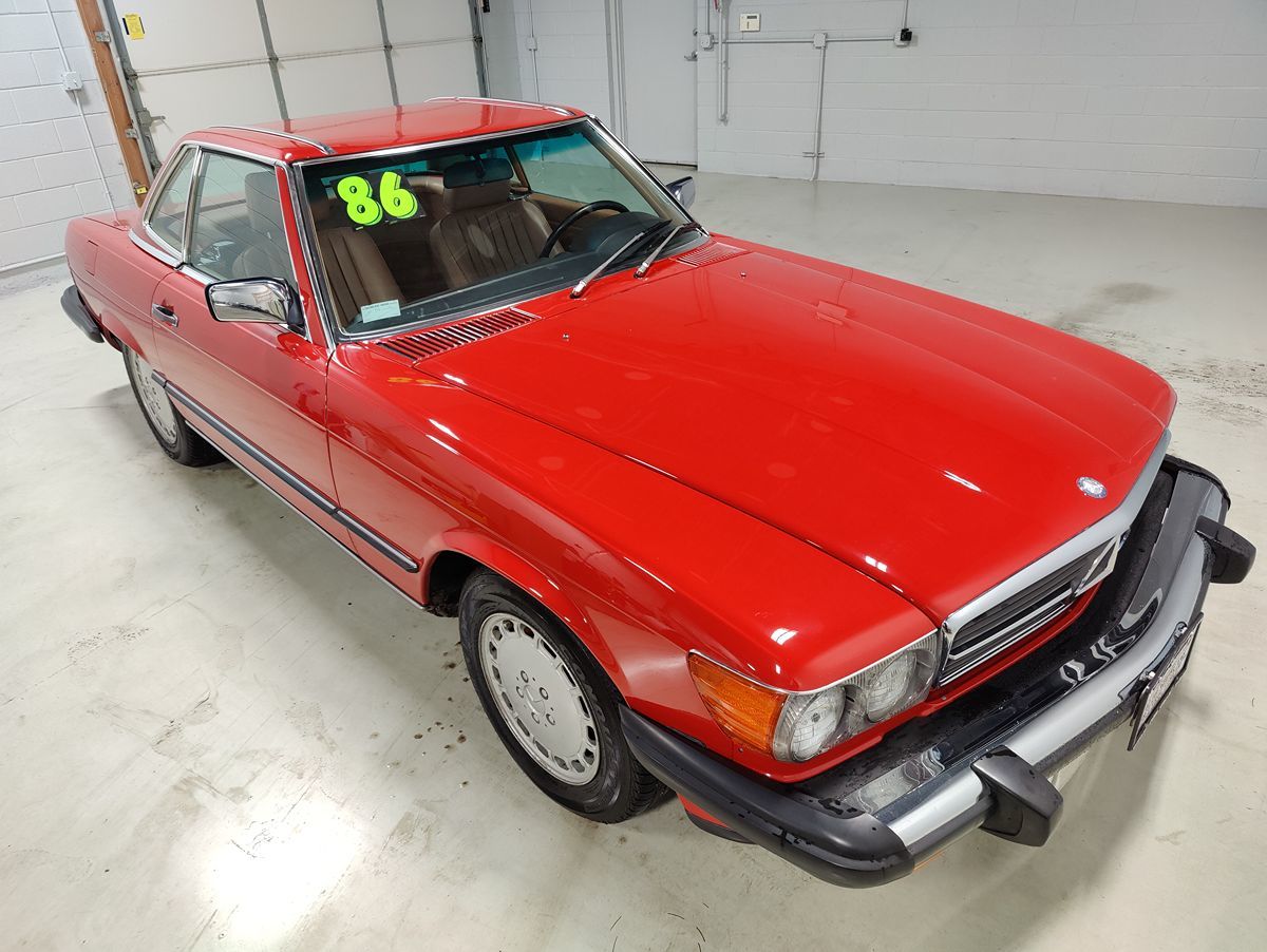 Our Red 1986 Mercedes-Benz SL Class SL560 Roadster is a lasting image of prestige and power. This 560SL is both of those still today, decades later. Powered by a 5.0 Liter V8 that is paired to a very responsive Automatic transmission that allows this sports car to get up to speed quick and still nearly 20mpg. Look at the straight lines, take in the chrome, admire the huge Mercedes-Benz-Benz grille that announces power and your arrival at the same time. If you were a fan of the 80's, ever watched the old TV Show Dallas, then you will recognize this as the one to have! Inside the SL560 cabin enjoy leather seating and the feel of superb fit and finish from Mercedes-Benz flagship roadster that is elegant, capable, and lavishly engineered. So whether you have the wind in your hair or the hard top in place, this dream car is ready for you. So whether you have the wind in your hair or the hard top in place, this dream car is ready for you.