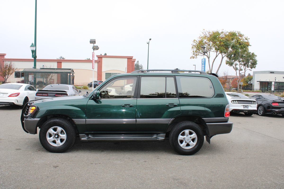 The 2000 Toyota Land Cruiser 4dr 4WD stands as a testament to the brand's reputation for reliability and ruggedness, dressed uniquely in an eye-catching Imperial Jade Mica. Equipped with a robust 4.7L 8-cylinder engine, this Land Cruiser is designed to handle both urban roads and off-road adventures with ease. Its Four Wheel Drive drivetrain ensures superior traction and control in a variety of driving conditions, making it an ideal vehicle for those who need versatility without compromising on comfort. Inside, the Land Cruiser offers a luxurious Oak-colored interior that harmonizes with its exterior, featuring additional touches of elegance such as a burlwood wood dash. The spacious cabin includes a 3rd row rear seat, making it perfect for families or those who travel with larger groups. With the convenience package, drivers enjoy added features that enhance the driving experience, ensuring every journey is as enjoyable as the destination. Functionality and style blend seamlessly with color-keyed running boards, providing both easy access and an added aesthetic appeal. The gold package further accentuates the vehicle's sophistication, providing an upscale touch that distinguishes it from its peers. Taken together, the 2000 Toyota Land Cruiser 4dr 4WD is more than just a vehicle; it’s a statement of quality, style, and adventurous spirit.