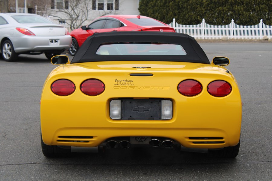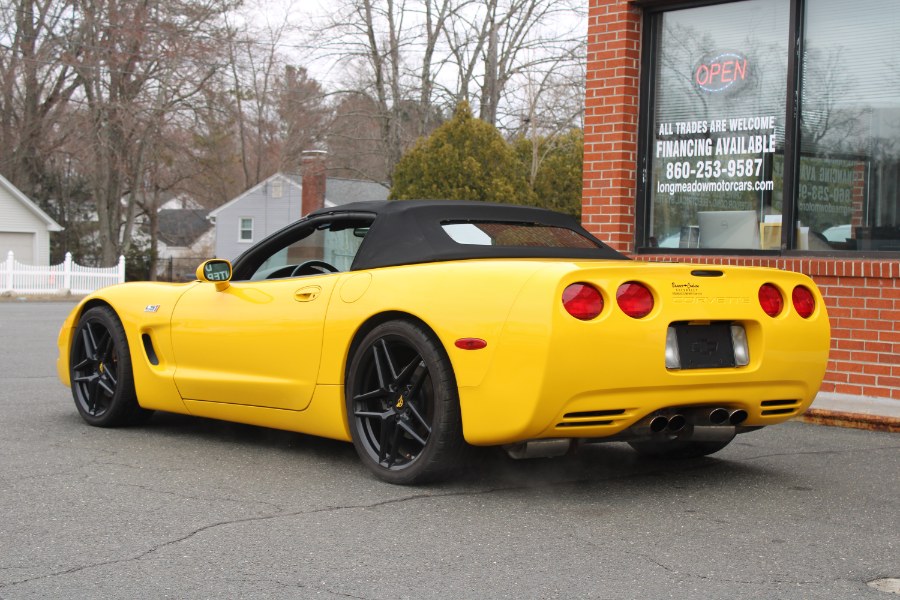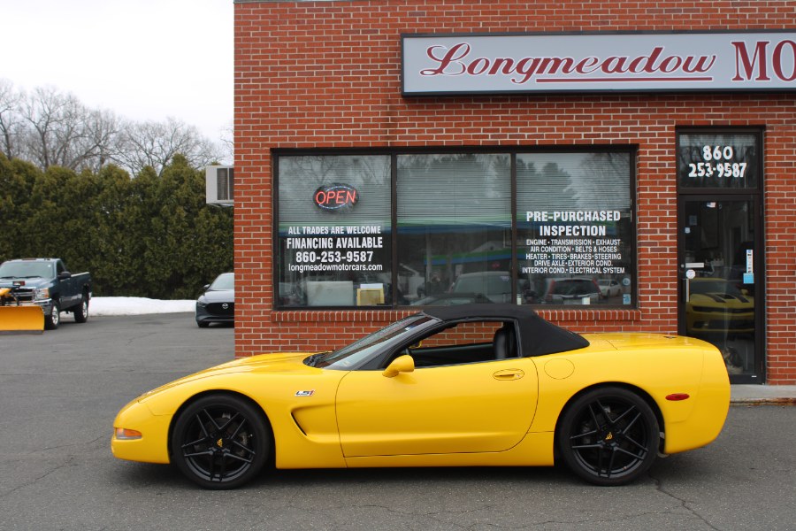 This 2001 Chevrolet Corvette is available at Longmeadow Motor Cars in Enfield, CT. It features a Millennium Yellow exterior with a Black leather interior and is powered by a 5.7L V8 engine. The vehicle offers rear wheel drive and is equipped with a convertible soft top. Please confirm the accuracy of the specifications provided above with the dealer's representative.