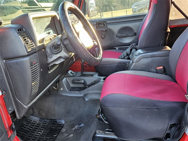 Red 2002 Jeep Wrangler X 4WD 3-Speed Automatic PowerTech 4.0L I6. PowerTech 4.0L I6, non smoker, best color combination, all service records, fresh trade, fuel efficient used cars, HD towing package, low mileage used cars, premium factory alloys, reliable used cars, used cars for sale. Milledgeville CJDR is the one stop, one click location to handle all of your automotive needs. With a tremendous selection of new and pre-owned inventory plus access to thousands of cars through our Five Star Network of dealers, we are sure we can find the perfect car to fit your needs and budget. We are proud to be a part of the Five Star family of dealers with over 20 franchises operating 17 stores over 4 states. We are committed to you, our customer, community involvement, and helping every person we serve with their automotive needs. Come see what makes the difference here at Milledgeville CJDR today. Call, click or come on by! All prices to include any and all factory or certificate issued rebates. All vehicles plus tax & title. Sale price includes $999 service fee. Used cars may be subject to recalls for safety issues that have not been repaired.