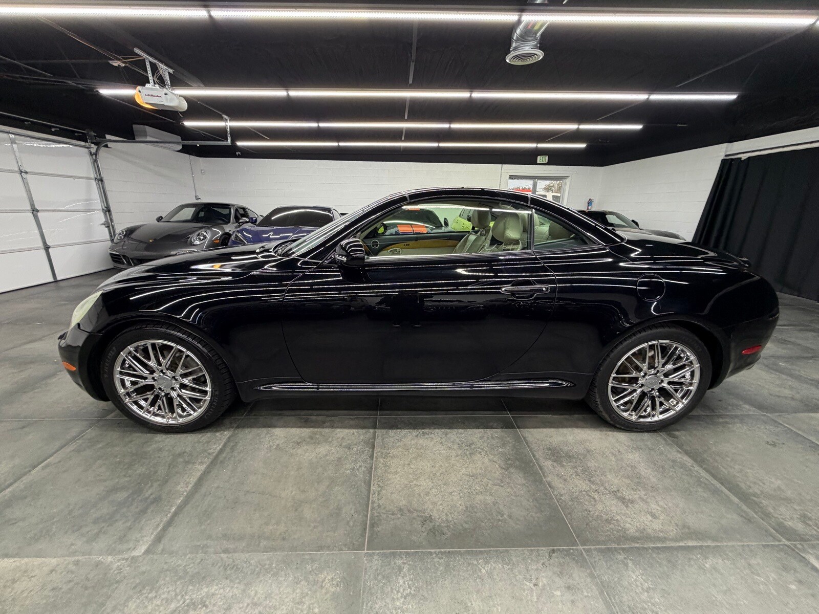 2002 Lexus SC 430 4.3L V8 SMPI DOHC 5-Speed Automatic with Overdrive. Recent Arrival! Leather. This vehicle comes with the following features and options : Leather, 18" x 8" Polished Alloy Wheels, 4-Wheel Disc Brakes, 9 Speakers, ABS brakes, Air Conditioning, Alloy wheels, AM/FM radio, Auto tilt-away steering wheel, Auto-dimming door mirrors, Auto-dimming Rear-View mirror, Automatic temperature control, Brake assist, Bumpers: body-color, Cassette, CD player, Compass, Convertible HardTop, Convertible roof lining, Convertible roof wind blocker, Delay-off headlights, Driver door bin, Driver vanity mirror, Dual front impact airbags, Dual front side impact airbags, Electronic Stability Control, Four wheel independent suspension, Front anti-roll bar, Front Bucket Seats, Front Center Armrest w/Storage, Front dual zone A/C, Front fog lights, Front reading lights, Fully automatic headlights, Garage door transmitter: Homelink, Genuine wood console insert, Genuine wood dashboard insert, Genuine wood door panel insert, Glass rear window, Headlight cleaning, Heated door mirrors, Heated front seats, High-Intensity Discharge Headlights, Illuminated entry, Integrated roll-over protection, Leather Seat Trim, Leather steering wheel, Low tire pressure warning, Mark Levinson Premium Audio System, Memory seat, Navigation System, Occupant sensing airbag, Outside temperature display, Panic alarm, Passenger door bin, Passenger vanity mirror, Power convertible roof, Power door mirrors, Power driver seat, Power passenger seat, Power steering, Power windows, Radio data system, Rear anti-roll bar, Rear window defroster, Remote keyless entry, Security system, Speed control, Speed-sensing steering, Speed-Sensitive Wipers, Steering wheel memory, Steering wheel mounted audio controls, Tachometer, Telescoping steering wheel, Tilt steering wheel.