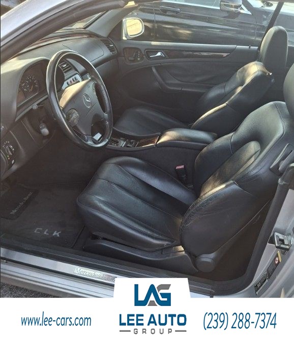 Meet our 2002 Mercedes-Benz CLK 320 Cabriolet shown off in stunning Brilliant Silver Metallic. Powered by a 3.2 Liter V6 generating 215hp connected to a 5 Speed Automatic transmission for spirited passing maneuvers. Our Rear Wheel Drive convertible achieves up to 28mpg on the highway while offering a perfect balance of ride/handling, smooth high-speed cruising, and responsive acceleration performance. Our CLK 320 soft top boasts heated/powered mirrors, gorgeous wheels, and an iconic grille! Inside the CLK 320, find room for four with outstanding power front leather seats, keyless entry, woodgrain trim, and a premium sound system. Safety equipment is considered in our Mercedes-Benz CLK 320 and includes ABS, traction control, and plenty of airbags. Save this Page and Call for Availability. We Know You Will Enjoy Your Test Drive Towards Ownership! Please call 239-288-7374 or stop by 8181 Mainline Parkway, Fort Myers, FL 33912. We have two locations with over 375 vehicles in stock and they can be seen at www.lee-cars.com. We have been family-owned and operated since 1968. We offer great financing with national lenders and have GUARANTEED CREDIT APPROVAL. We offer extended service contracts (warranties) on every vehicle in stock. We would love the opportunity to EARN your business!