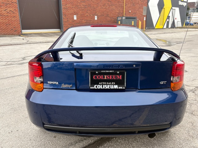 Certification included! No accidents! No modifications! All original! Toyota dealer serviced and maintained! GT automatic! 1.8L 16 valve DOHC 4 cylinder! Full power options! Spoiler! Alloys! Keyless entry! Garage kept! Rarely winter driven! Carfax verified! We welcome your mechanic's inspection and approval prior to purchase! Quite possibly the cleanest Celica on the market! This vehicle comes fully certified with a safety certificate & serviced at no extra cost. Coliseum Auto Sales proudly serving the customers for over 26 years! Now with 2 locations to serve you better. Come in for a test drive today! For all family luxury vehicles, SUV's, and sedans please visit. Coliseum Auto Sales on Weston.