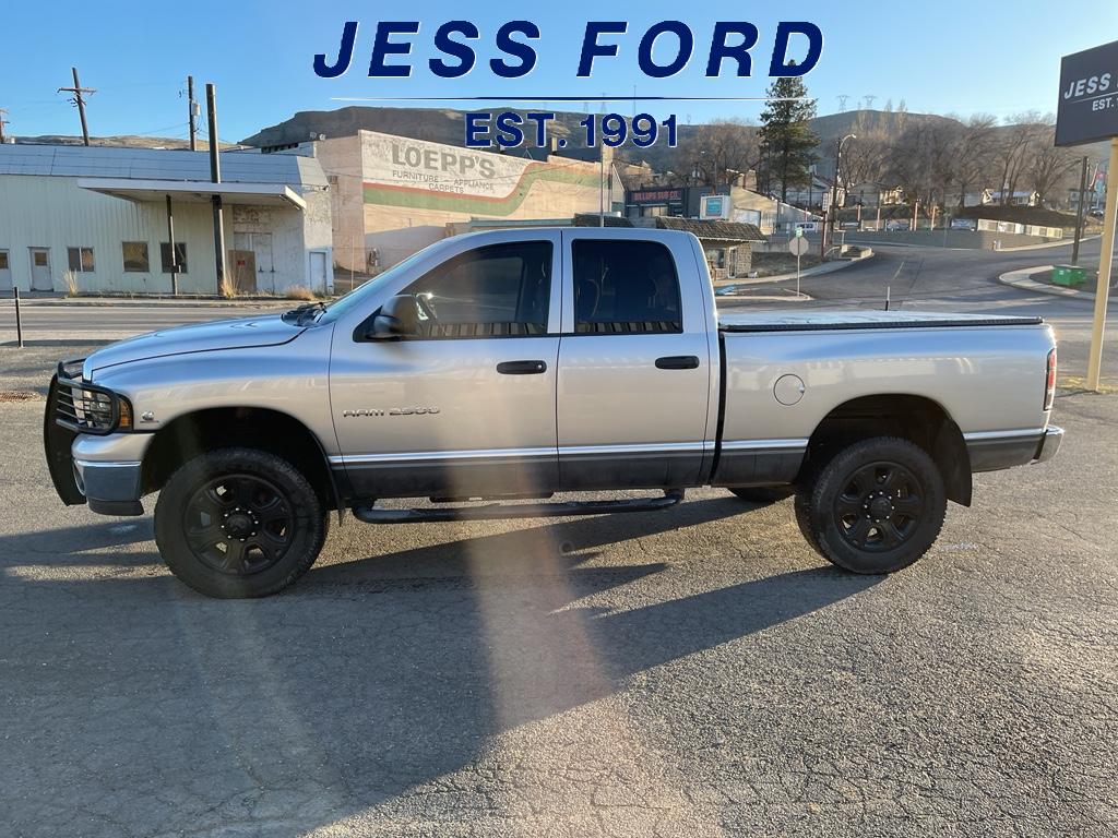 2004 Dodge Ram 2500 SLT 4WD with the durable 6-cylinder 5.9L diesel engine, located in Eastern WA, offers rugged capability and proven reliability at the best price. This heavy-duty pickup combines strong towing performance with a spacious SLT interior, making it ideal for work, hauling, or weekend adventures. The CARFAX Clean Report provides added assurance of the vehicle's history, and the diesel powerplant delivers excellent low-end torque and long-term durability. Features include four-wheel drive for confident traction in challenging conditions, Satellite Radio for extended entertainment on long drives, and a comfortable cloth-trimmed cabin with power accessories and convenient storage. The Ram 2500's solid frame and heavy-duty suspension handle demanding loads while maintaining stability and control. This model balances practicality and comfort with ample bed space for equipment and materials. Located at Jess Ford, this 2004 Dodge Ram 2500 SLT is priced competitively to move quickly—offering the best price in the area for buyers seeking value and performance. Whether you need a dependable work truck or a capable off-road vehicle, this Ram delivers dependable diesel power and a clean vehicle history. Contact us to schedule a test drive and experience this rugged pickup for yourself.