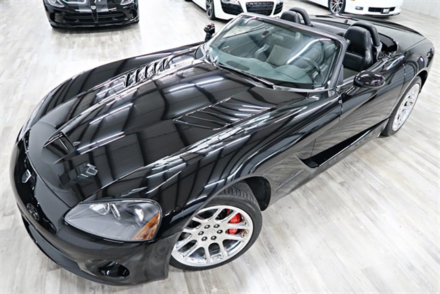 Clean Carfax with only 16K original miles. This 2004 Dodge Viper SRT-10 Convertible features a powerful 8.3L V10 engine and a sleek black exterior. It includes a premium sound system and leather seats.