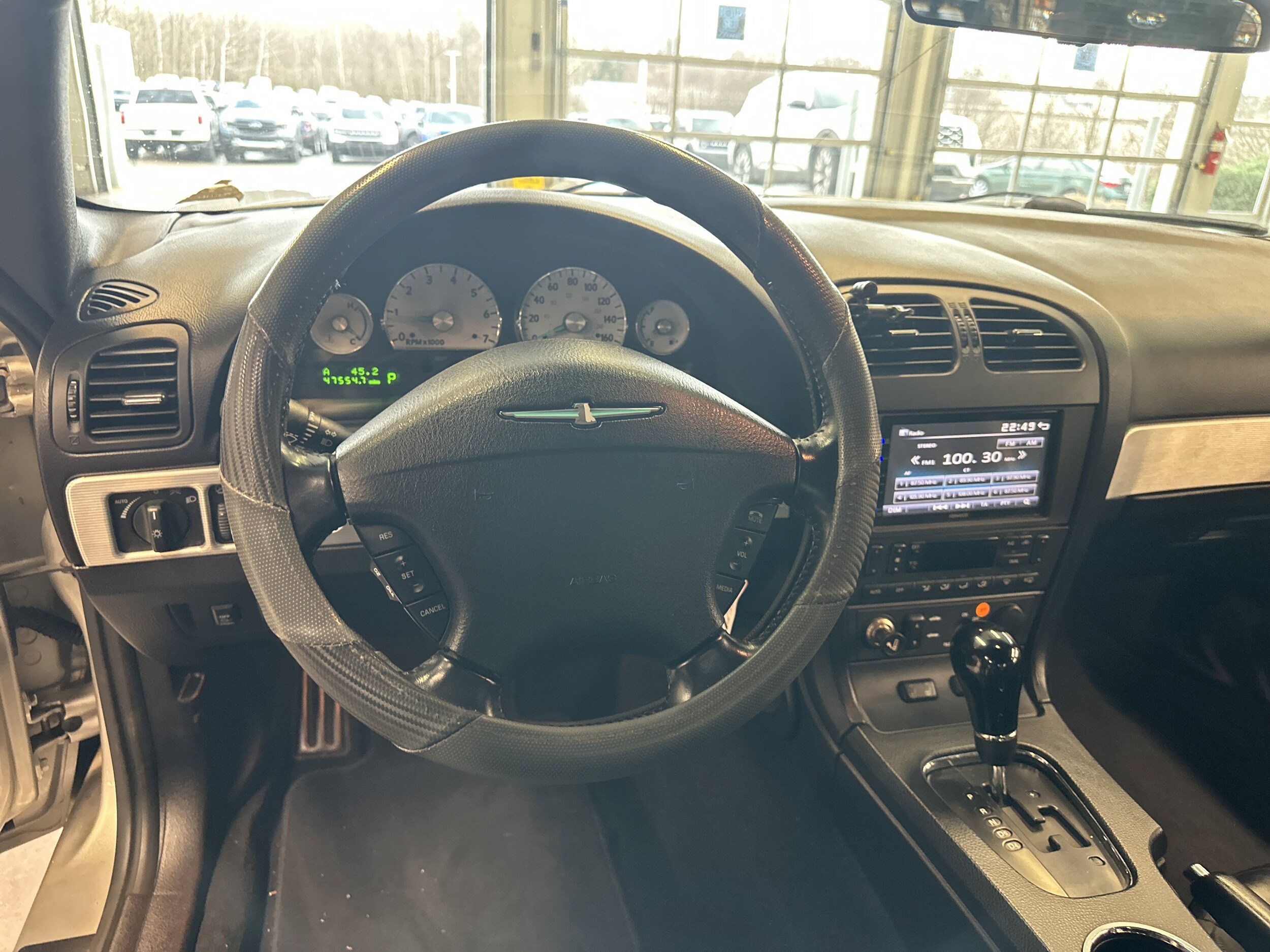 Clean Carfax! Local trade! Hard top with stand! Vogue Custom Built Radial VIII Red Stripe Tires! 2D Convertible, 3.9L V8 DOHC 32V, 5-Speed Automatic, RWD, Black Ink with Reclining Heated Front Leather Bucket Seats, 17" 16-Spoke Micro-Machined Wheels, Automatic temperature control, Fully automatic headlights, Garage door transmitter: HomeLink, Glass rear window, Power driver seat, Reclining Heated Front Leather Bucket Seats, Removable Top with Heated Glass Rear Window. Clean Carfax. Platinum Silver 2004 Ford Thunderbird Deluxe. All vehicles are subject to prior sale. Price does not include applicable tax, title, license, and a $398.00 documentation fee or other fees required by law, lending institutions, and/or lessors. Vehicles shown at different locations are not currently in our inventory (not in stock) but can be made available at our location within a reasonable time after your request. The payment information provided here is not a commitment by any organization to provide credit, leases or other programs.
