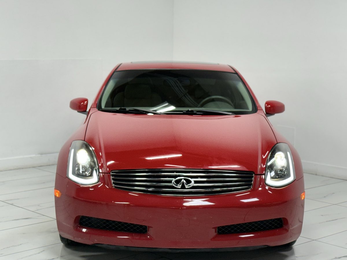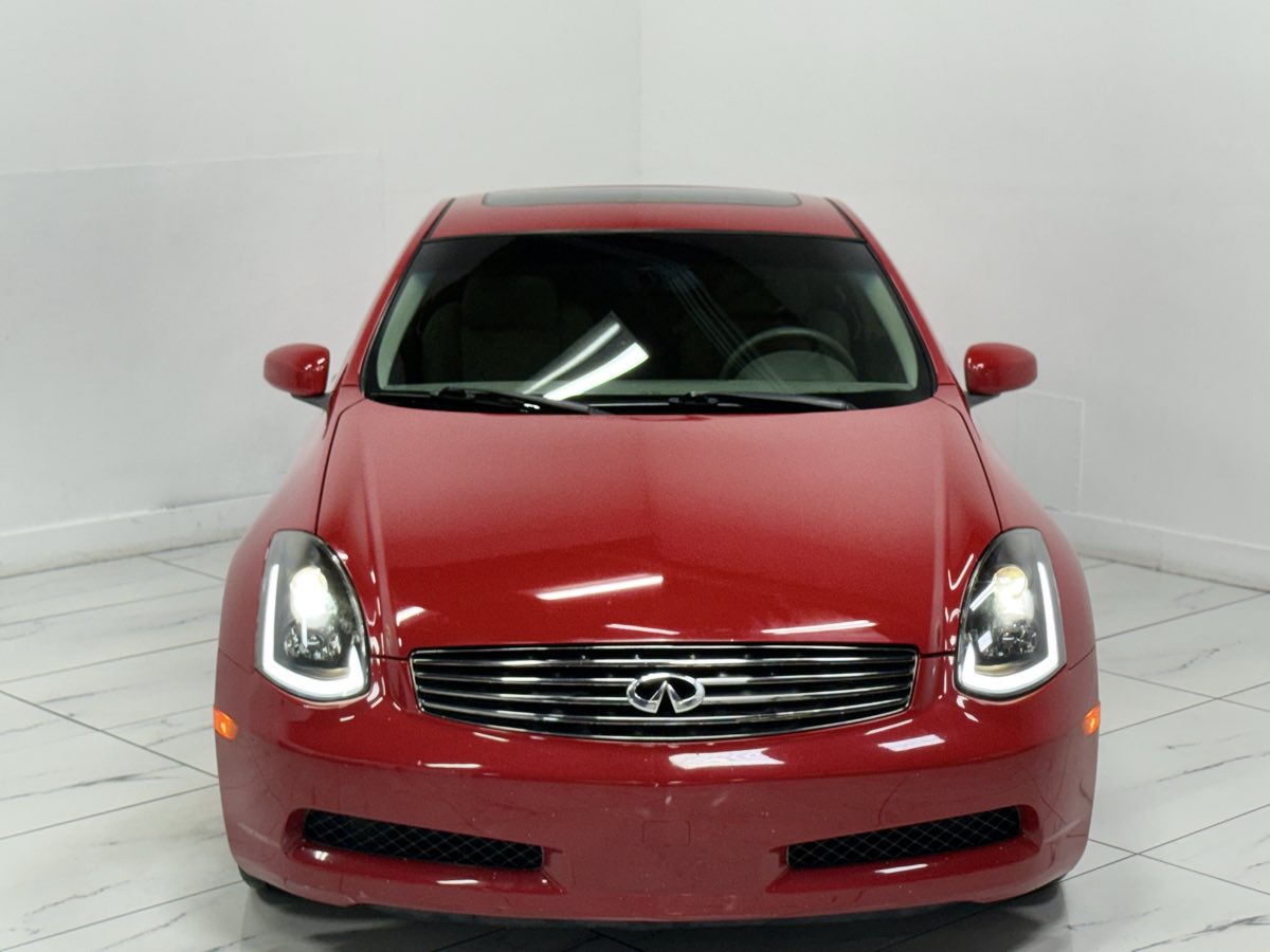 Meet our magnificent 2004 INFINITI G35 Coupe presented in Laser Red. Powered by a 3.5 Liter V6 that delivers 280hp while connected to a 5 Speed Automatic transmission. This Rear Wheel Drive combination offers nearly 25mpg as you cruise down the highway! HID headlamps, LED tail-lights, 17-inch wheels, and a rear lip spoiler make this sleek machine. Inside our G35, you'll enjoy heated leather front seats as you let in the light from the sunroof. Modern necessities such as climate control, steering wheel-mounted controls, cruise control, power accessories, and an incredible stereo system with a CD/MP3 player keep you smiling from ear to ear. INFINITI offers amazing safety features like ABS, airbags, stability control, child seat anchors, and a tire-pressure monitor to keep you and your passengers secure. This G35 is waiting for you! Save this Page and Call for Availability. We Know You Will Enjoy Your Test Drive Towards Ownership!