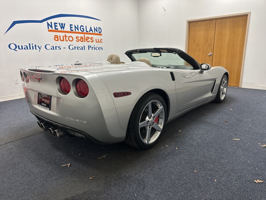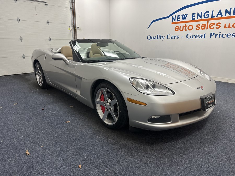 2005 Chevrolet Corvette 2dr Convertible, available for sale in Plainville, Connecticut. This Corvette features a Machine Silver Metallic exterior with a Cashmere leather interior and is powered by a 6.0L LS2 V8 engine. The vehicle is equipped with a manual folding convertible top, dual-zone automatic air conditioning, and a sound system with CD player and MP3 playback. Please confirm the accuracy of the specifications provided above with the dealer's representative.