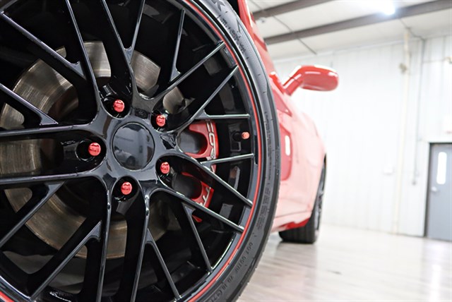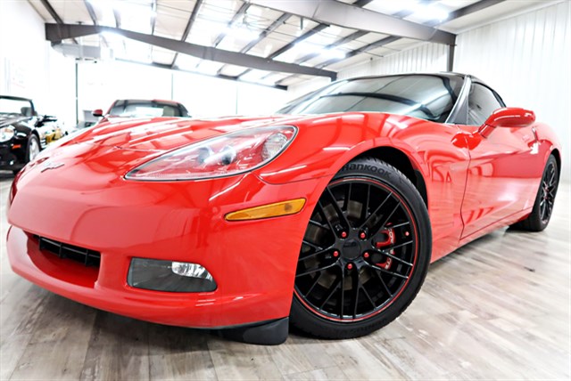 2005 Chevrolet Corvette in Victory Red with a clean Carfax. It features a 6-speed manual transmission and a 6.0L V8 engine. The vehicle includes premium features like an upgraded stereo with a touch screen, heated seats, and a removable top.