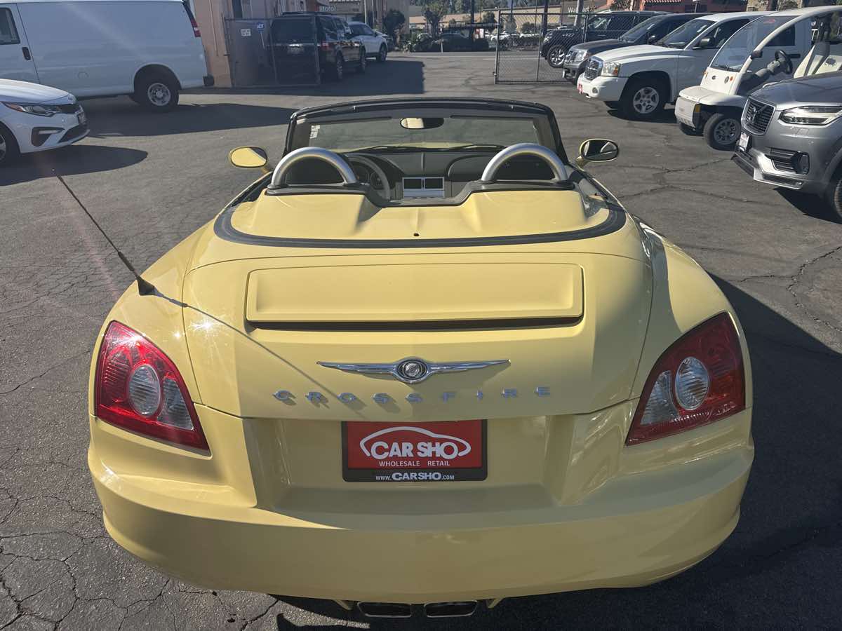 The 2005 Chrysler Crossfire 2dr Roadster Limited is a striking blend of classic design and modern engineering, embodying the perfect balance of style and performance. Its stunning Classic Yellow exterior is a head-turner, radiating a vibrant energy that commands attention on every road it graces. Complementing the bold exterior is a refined Dark Gray/Vanilla premium two-tone interior, exuding elegance and comfort for both driver and passenger. Under the hood, this roadster houses a robust 3.2L SOHC 18-valve V6 engine, delivering a spirited driving experience with its smooth and powerful performance. Paired with a 5-speed automatic transmission, the Crossfire promises effortless gear transitions and a drive that’s both dynamic and responsive. Its sport-tuned suspension and precision handling offer the driver remarkable control, while the p225/40zr18 front and p255/35zr19 rear all-season performance tires ensure superior traction and stability in various conditions. Enhanced by the 22a customer preferred order selection package, this limited-edition roadster feels uniquely tailored to high-end tastes and desires. The car’s sculpted bodywork and aerodynamic lines not only enhance its aesthetic appeal but also contribute to its thrilling driving dynamics. Whether you're cruising through the city or embarking on a weekend getaway, the Chrysler Crossfire delivers an exhilarating open-air driving experience, making every journey memorable.