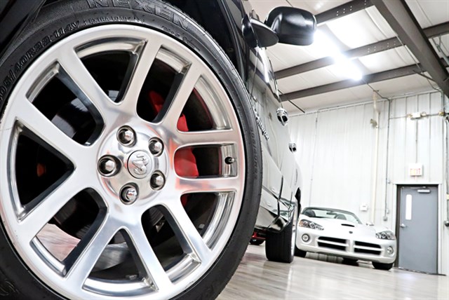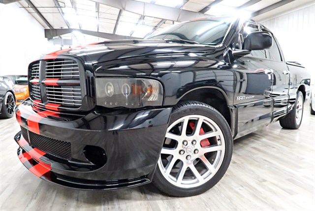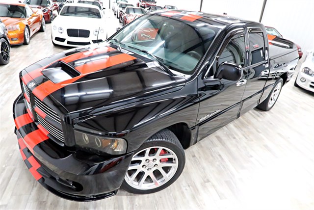 This 2005 Dodge Ram 1500 SRT-10 Quad Cab 2WD features a clean Carfax and is owned by one person. It includes a powerful 8.3L V10 engine and a 4-speed automatic transmission. The vehicle is equipped with dual exhaust tips, a 4.56 axle ratio, and front/rear performance tuned shocks. It offers a luxurious interior with leather seats, a power sunroof, and heated front seats.