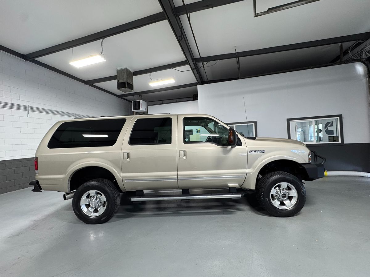 Our 2005 Ford Excursion Limited 4WD stands out in a bold Pueblo Gold Metallic exterior finish! Motivated by a TurboCharged 6.0 Liter PowerStroke Diesel V8 that offers 325hp tied to a 5 Speed Automatic transmission. This Four Wheel Drive SUV is ready for whatever your day holds while showing off its commanding stance, running boards, roof rails, fog lights, bold wheels and tires, privacy glass, grille guard, and body-colored accents. This Limited cabin has upscale features so everyone can settle in and enjoy it. Settle into the leather front seats with memory, a leather-wrapped steering wheel with controls, remote keyless entry, multi-zone climate control, power accessories, rear entertainment, a six-speaker audio sound system with AM/FM/CD player, and auto-dimming rearview mirrors. Ford has your safety covered with ABS, rear parking aid, airbags, and more. This Excursion Limited is ready for you to come to see today! Save this Page and Call for Availability. We Know You Will Enjoy Your Test Drive Towards Ownership!