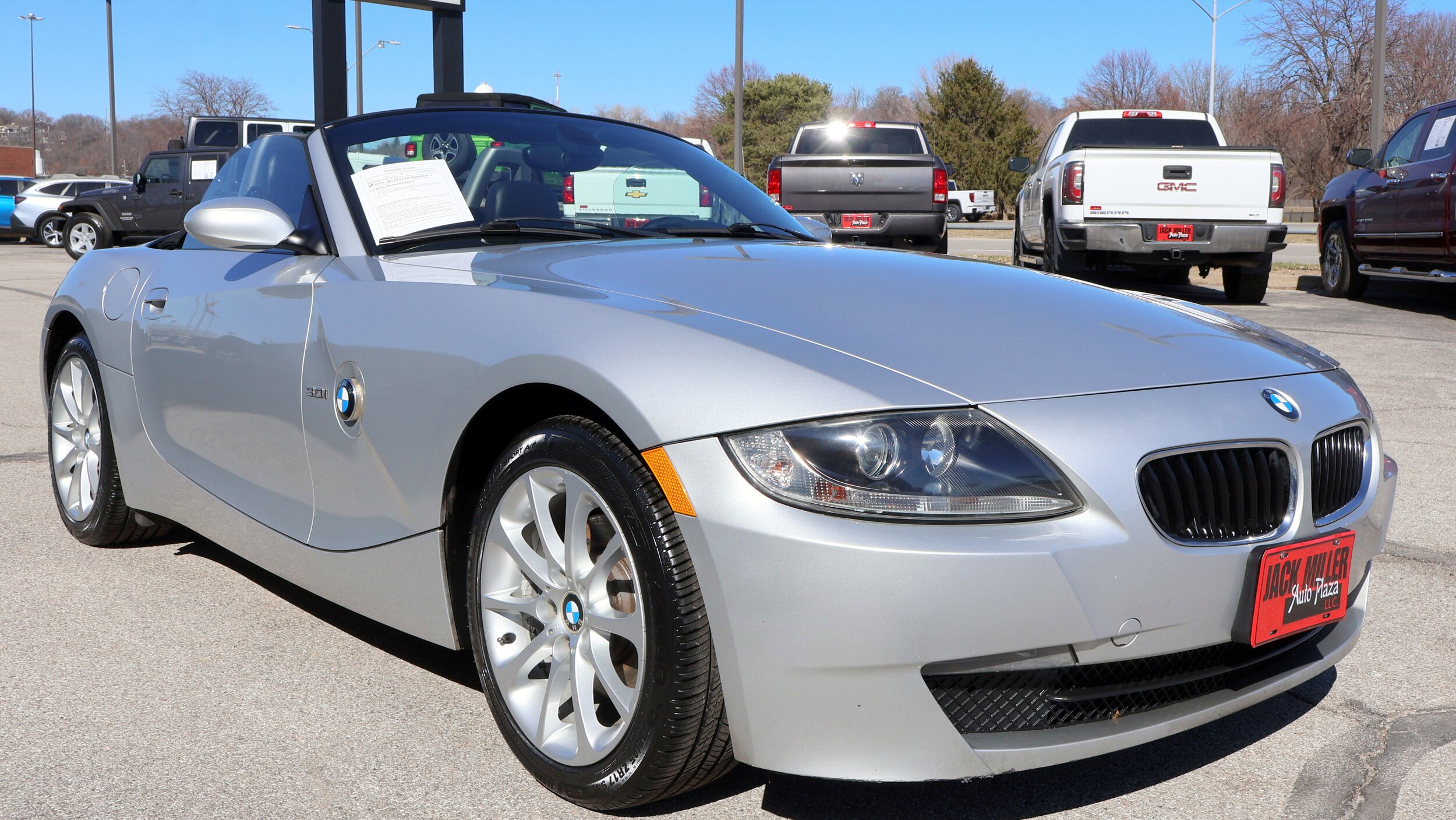KBB.com Best Resale Value Awards. Only 80,972 Miles! Scores 30 Highway MPG and 20 City MPG! This BMW Z4 delivers a Gas I6 3.0L/183 engine powering its sleek transmission. Twin-tube gas-pressure shock absorbers, Side-impact airbags, Service Interval Indicator with miles-to-service readout. This BMW Z4 comes equipped with these options: rear wheel drive, rain-sensing windshield wipers, power windows with driver 1-touch up/down, pre-wiring for alarm system, leatherette upholstery, front/rear stabilizer bars, front fog lights, electronic throttle control, dual power heated mirrors, dual cup holders. Stop by today. A short visit to Jack Miller Auto Plaza located at 3100 Burlington St, North Kansas City, MO 64116 can get you a dependable Z4 today!