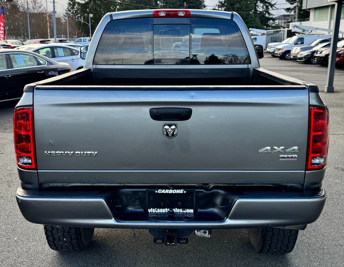 The 2006 Dodge Ram 3500 4dr Quad Cab 140.5" SRW 4WD SLT is a formidable truck that combines power with style, making it a versatile choice for both work and leisure. With its striking Mineral Gray Metallic exterior, this vehicle exudes a rugged elegance that's sure to turn heads on the road. Complementing the exterior is the luxurious Medium Slate Gray interior, offering a comfortable and stylish cabin experience. Under the hood lies a robust 5.9L 6-cylinder engine, providing exceptional towing and hauling capabilities for all your demanding tasks. This powerhouse is paired with a 4-speed automatic transmission with overdrive, ensuring a smooth and responsive drive. The four-wheel-drive drivetrain ensures that you'll maintain traction and stability, no matter the terrain or weather conditions you encounter. A thoughtfully included bed liner provides added protection, allowing you to transport cargo with confidence. Equipped with premium features, the Ram 3500 enhances every journey. Enjoy the premium sound system that includes an AM/FM/MP3 stereo with an in-dash 6-disc CD changer, perfect for audiophiles on the go. Keyless entry adds a touch of convenience, while the power sunroof lets you enjoy the sky above on your travels. The interior is further elevated by leather-trimmed low-back bucket seats, providing both comfort and sophistication. Additionally, the 2UL Sport Customer Preferred Order Selection Package ensures this truck stands out with its unique blend of style and functionality.