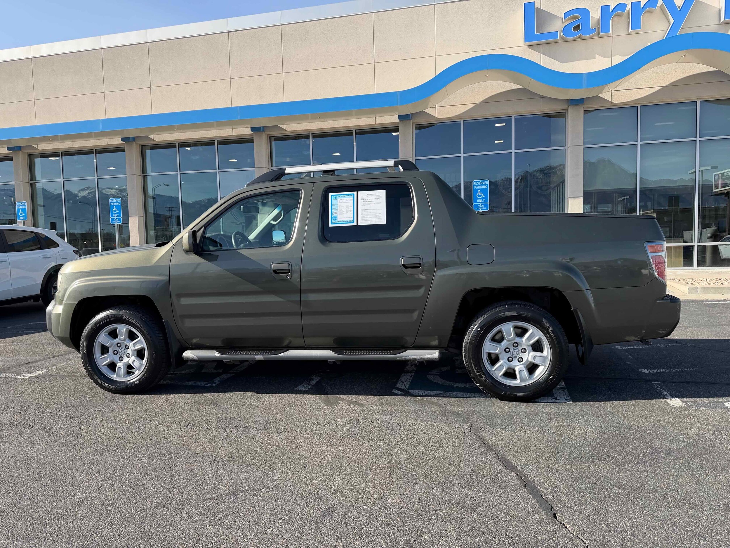 Gray Leather. Recent Arrival! CARFAX One-Owner. Odometer is 15751 miles below market average! Larry H. Miller Honda Murray offers this 2006 Amazon Green Metallic Honda Ridgeline RTL 4WD It is loaded with many standard and optional features including: Gray Leather, 17 x 7.5J Aluminum Alloy Wheels, 4-Wheel Disc Brakes, 4.533 Axle Ratio, 7 Speakers, ABS brakes, Air Conditioning, Alloy wheels, AM/FM radio, AM/FM/6-Disc In-Dash CD Chgr Audio System, Automatic temperature control, Brake assist, Bumpers: body-color, CD player, Compass, Driver door bin, Dual front impact airbags, Dual front side impact airbags, Electronic Stability Control, Four wheel independent suspension, Front anti-roll bar, Front Bucket Seats, Front Center Armrest w/Storage, Front dual zone A/C, Front reading lights, Garage door transmitter: HomeLink, Heated door mirrors, Heated Front Bucket Seats, Heated front seats, Illuminated entry, Leather Seat Trim, Low tire pressure warning, Occupant sensing airbag, Outside temperature display, Overhead airbag, Overhead console, Panic alarm, Passenger door bin, Passenger vanity mirror, Power door mirrors, Power driver seat, Power steering, Power windows, Rear anti-roll bar, Rear reading lights, Rear seat center armrest, Rear step bumper, Remote keyless entry, Security system, Speed control, Speed-sensing steering, Split folding rear seat, Steering wheel mounted audio controls, Tachometer, Tilt steering wheel, Traction control, Trip computer, and Variably intermittent wipers.