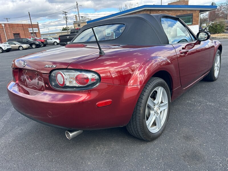 Spring is here put the top down on this Copper Red Mica 2006 Mazda MX-5 Miata Touring — brutally clean, brutally fun. Powered by the rev-happy 2.0L NA I4 DOHC 16V, this low-mileage Miata (under 62,000 miles, under 3,000 miles/year) returns 22 MPG city / 27 MPG highway and drives like a scalpel. Factory-equipped with a manual convertible soft top, air conditioning, cruise control, power windows/locks/mirrors, tilt steering, black cloth seats with leather accents, leather-wrapped steering wheel and shift knob, 16" alloy wheels, AM/FM/CD stereo, anti-lock brakes and dual front airbags, and a sport-tuned chassis — all in excellent overall condition with a clean CARFAX. Don’t hesitate — this one’s ready to own the road.