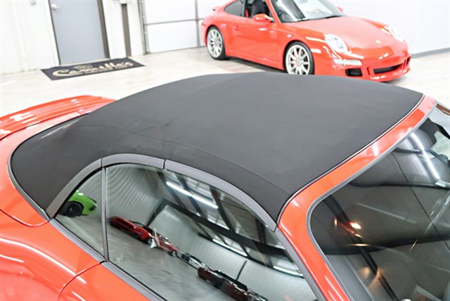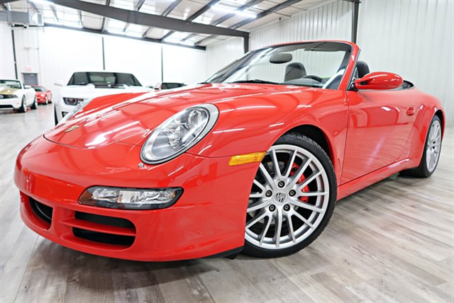 2006 Porsche 911 Carrera S Cabriolet with a clean Carfax and low mileage. Features a 3.8L H6 engine and 5-speed automatic transmission. It comes in Guards Red with a black leather interior and has an original MSRP over $100K.