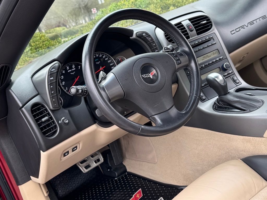 Monterey Red Metallic Tintcoat 2007 Chevrolet Corvette RWD 6.0L V8 SFI Enhanced Acoustic Package, Memory Package, Preferred Equipment Group 3LT (6-Way Power Front Passenger Seat Adjuster, AM/FM Stereo w/6-Disc In-Dash CD/MP3, Body-Color Outside Heated Power-Adjustable Mirrors, Compass, Driver & Front Passenger Heated Seats, Driver & Passenger Frontal & Side-Impact Airbags, Front Sport Bucket Seats, Head-Up Display, Inside Rear-View Auto-Dimming Mirror w/Compass, Luggage Shade, Manual Tilt/Power Telescoping Steering Column, Rear Compartment Area Cargo Net, Steering Wheel Mounted Audio Controls, Universal Home Remote, and XM Satellite Radio), 1-Piece Removable Body-Color Roof Panel, 18" x 8.5" Front & 19" x 10" Rear Painted Aluminum Wheels, 18" x 8.5" Front 19" x 10" Rear Chrome Aluminum Wheels, 4-Wheel Disc Brakes, 7 Speakers, 7-Speaker System, ABS brakes, Air Conditioning, Alloy wheels, AM/FM radio, AM/FM Stereo w/CD Player/MP3 Playback, Automatic temperature control, Bumpers: body-color, CD player, Delay-off headlights, Driver door bin, Driver vanity mirror, Dual front impact airbags, Electronic Stability Control, Four wheel independent suspension, Front anti-roll bar, Front Bucket Seats, Front Center Armrest, Front dual zone A/C, Front fog lights, Front reading lights, Fully automatic headlights, Heated door mirrors, High-Intensity Discharge Headlights, Highwear Nuance Leather Seat Trim, Illuminated entry, Leather Shift Knob, Leather steering wheel, Low tire pressure warning, Occupant sensing airbag, Outside temperature display, Panic alarm, Passenger door bin, Passenger vanity mirror, Power door mirrors, Power driver seat, Power steering, Power windows, Radio data system, Rear anti-roll bar, Rear window defroster, Remote keyless entry, Security system, Speed control, Speed-sensing steering, Sport steering wheel, Tachometer, Tilt steering wheel, Traction control, Trip computer, Variably intermittent wipers, and Voltmeter.