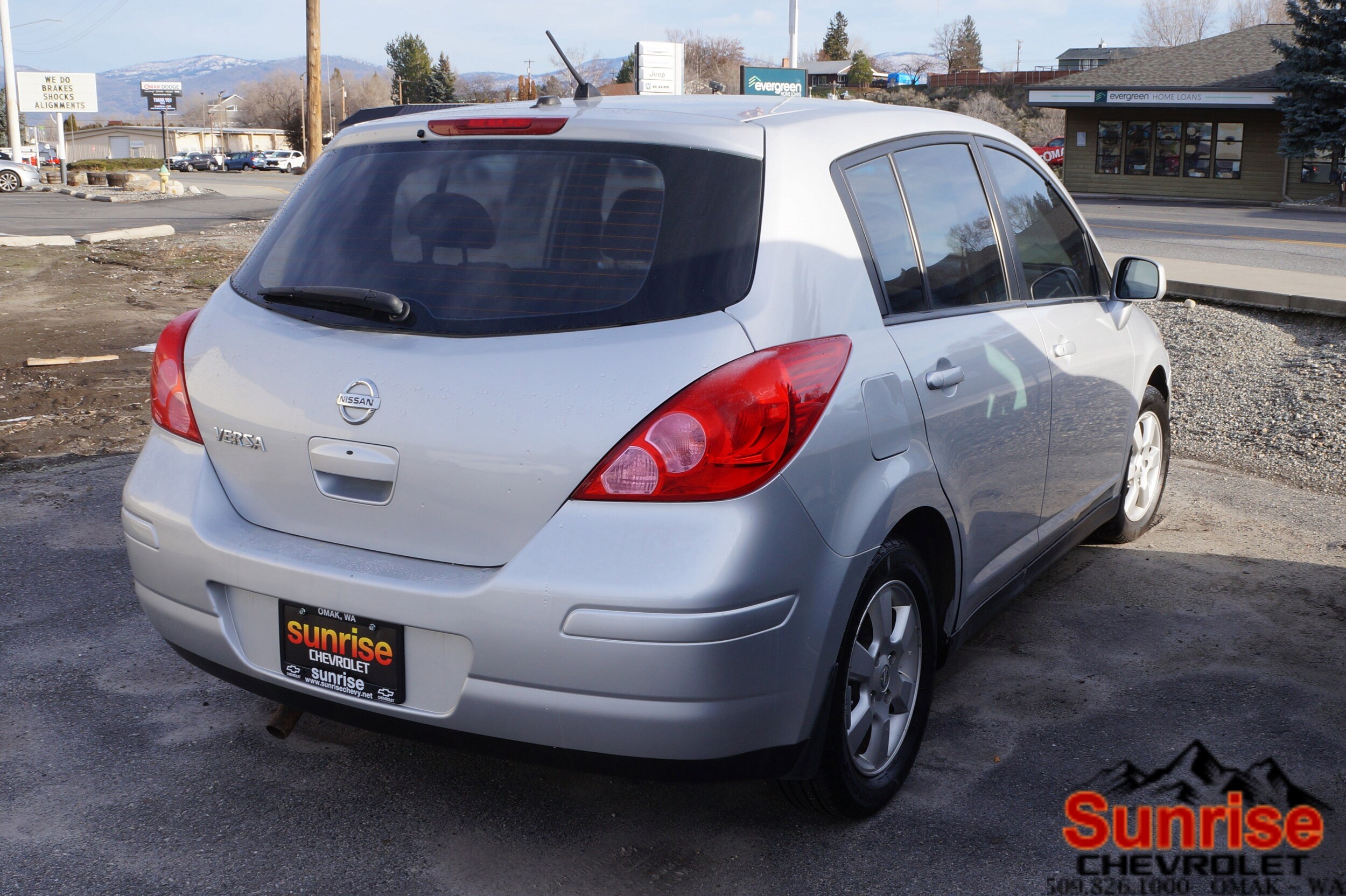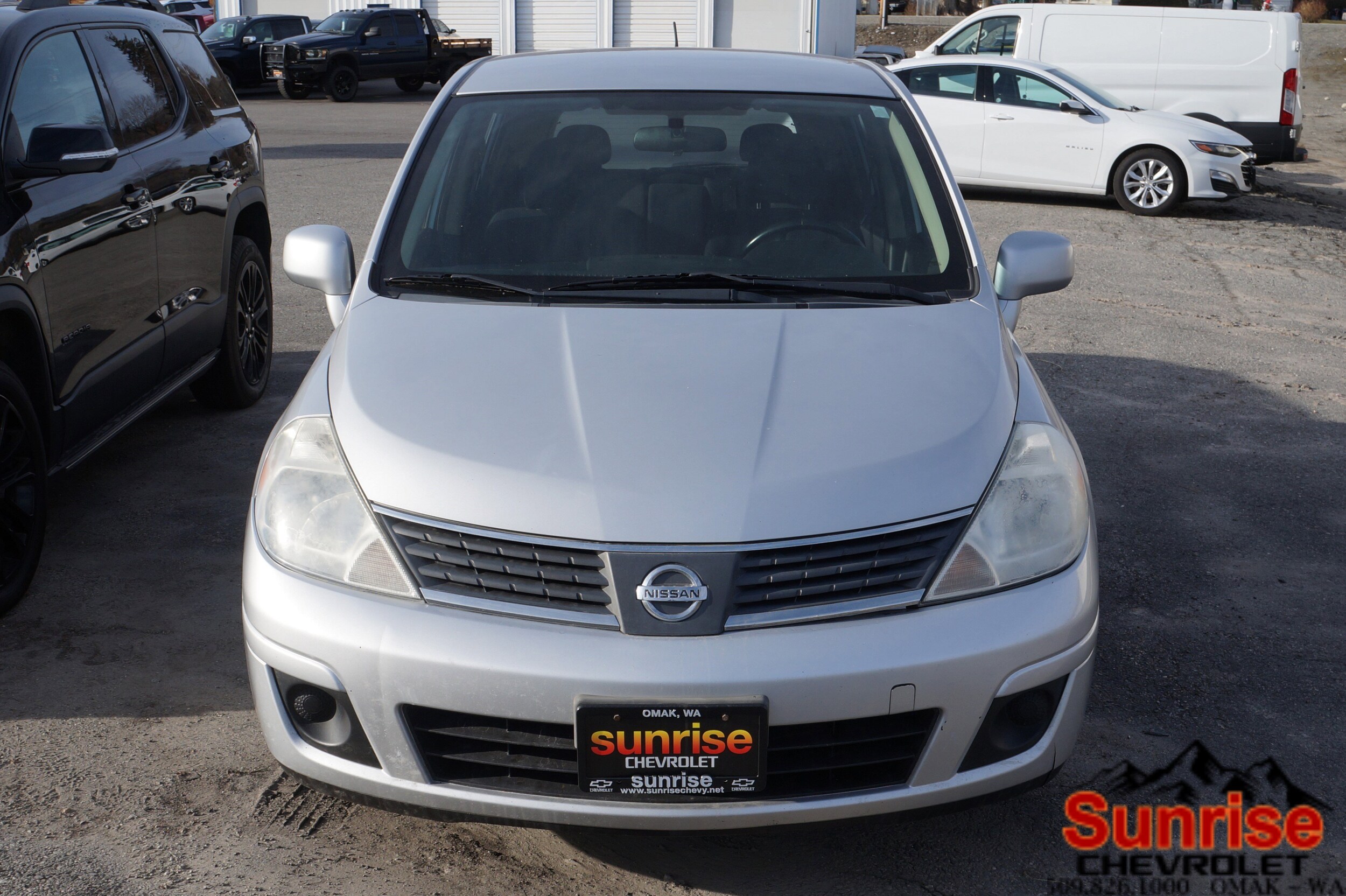 Come see this reliable 2007 Nissan Versa. Variable intermittent windshield wipers, Torsion beam rear suspension with stabilizer bar, Tire pressure monitoring system, Tilt steering column, Roof mounted antenna. This Nissan Versa comes equipped with these options: Retained accessory power, Remote fuel lid release, Reclining front bucket seats, Rear window defroster with timer, Rear child seat tether anchors (LATCH), Power steering, Power rear liftgate release, Power front vented disc/rear drum brakes, Pipe-style side-door impact beams, P185/65HR15 all-season tires. Visit us today. A short visit to Sunrise Chevrolet located at 726 Okoma Dr, Omak, WA 98841 can get you a dependable Versa today!