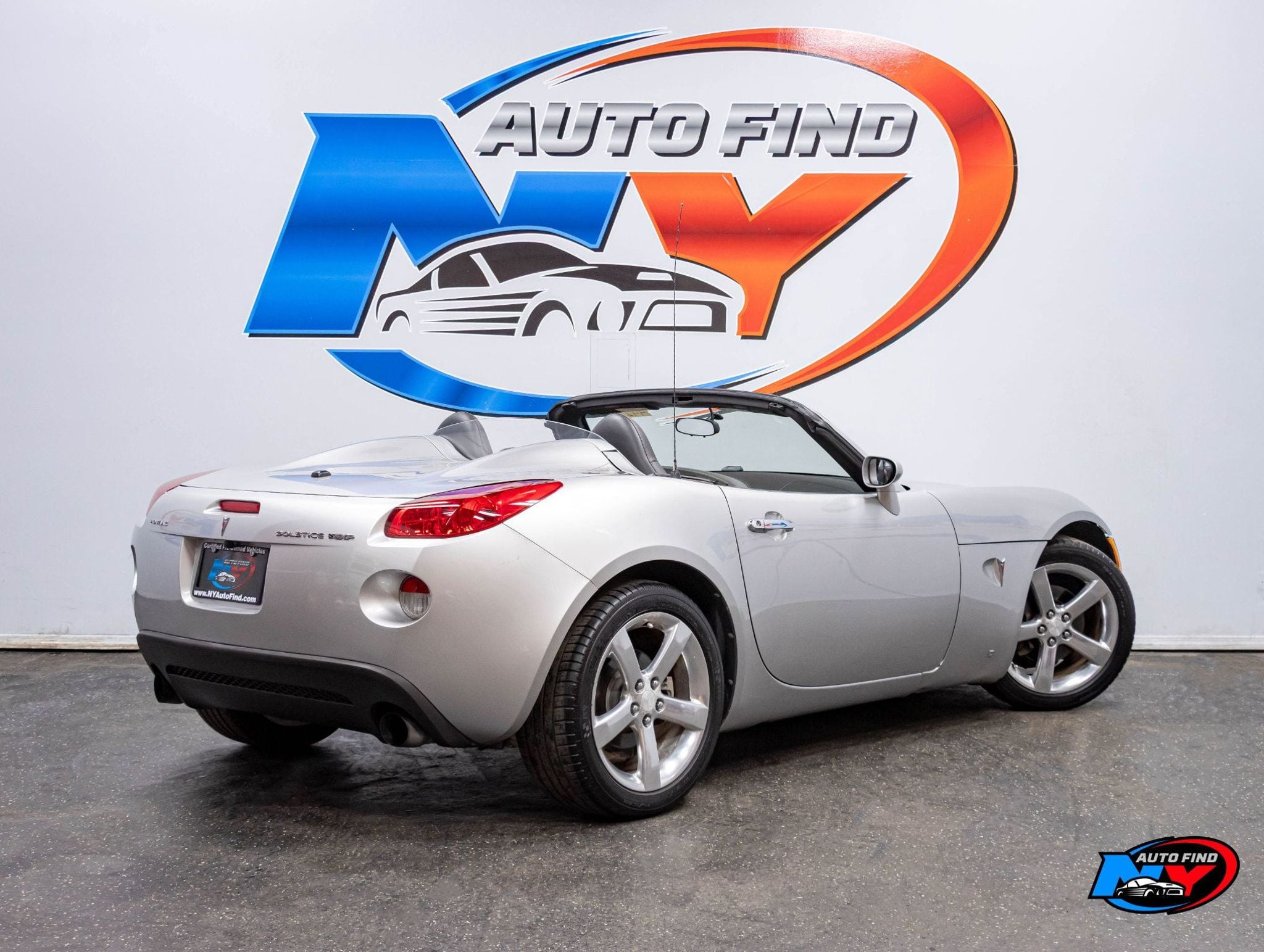 Take a look at this Cool Liquid Silver Metallic 2007 Pontiac Solstice Convertible GXP with Ebony and Red Stitching Leather Interior and only 98,166 miles. This car gives you something to be excited about and something to really look forward to. Driving up in this car is such a thrill with its extremely well maintained surfaces both inside and out. It also has low mileage that really backs up its phenomenal appearance. It is an unforgettable car, so call us now. It comes equipped with a 2.0L 4-cylinder Engine paired to a 5-speed Automatic Transmission, Premium Package (with Leather Seating Surfaces, 3-Spoke Leather Wrapped Steering Wheel, Steering Wheel Accessory Controls), Leather Seating Surfaces with GXP Embroidery, Monsoon Premium 7 Speaker Audio System (with 2-6" Door Speakers, 2-1" A-Pillar Tweeters, 2-3.5" Rear Speakers and 1 Subwoofer), XM Satellite Radio, Daytime Running Lamps, Front Bucket Seats, Cruise Control, Steering Wheel Controls, AM/FM Radio, Power Windows, Power Locks, Air Conditioning and so much more. Every NY Auto Find vehicle comes with a complimentary Limited Warranty and a Carfax Vehicle Report. Our vehicles are priced to sell quickly. Please call to check availability and schedule an appointment.