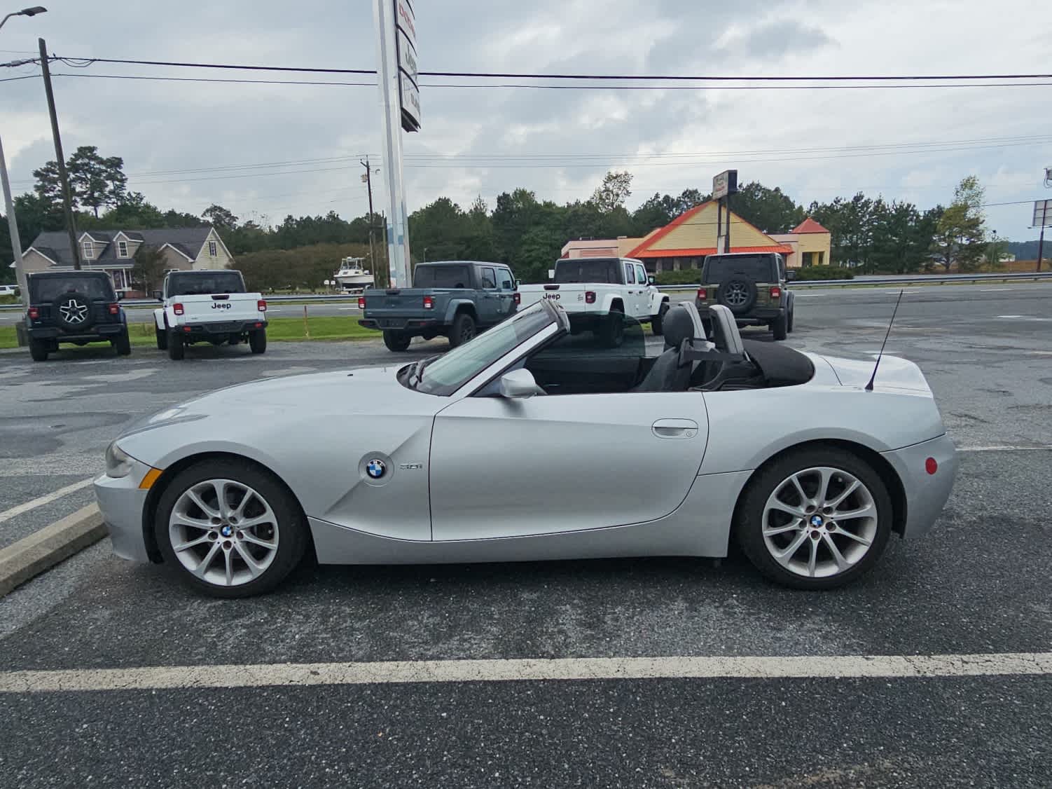 3.0i trim. Extra Clean, only 58,399 miles! Fuel efficient 28 MPG Hwy/18 MPG City! Consumer Guide Best Buy Car, iPod/MP3 Input, Alloy Wheels, Premium Sound System, Non-Smoker vehicle. 4 Star Driver Front Crash Rating. In nearly all performance aspects, the Z4 shines. Acceleration, braking and handling are all excellent. The Z4 is in its element on lightly trafficked roads when one can push the car toward its limits and enjoy the engine's sonorous exhaust note. Great Gas Mileage: 28 MPG Hwy. BMW 3.0i with Titanium Silver Metallic exterior and Black interior features a Straight 6 Cylinder Engine with 215 HP at 6250 RPM.