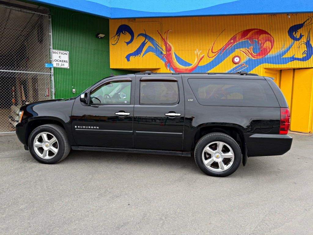 This local, declaration free Chevrolet Suburban comes well equipped as a top trim level LTZ model with a black exterior, black leather interior, heated 8 way power adjustable front seats, dual zone climate control, air conditioning, power sunroof, power windows, keyless entry, navigation system, rear dvd entertainment system, aux input, 20" alloy wheels, and has a 5.3L V8 engine producing 310hp / 335lb-ft paired to a 4 speed automatic transmission. Viewings are by appointment only. Please call or send an inquiry to set up a time and ensure vehicle is available for viewing. We have the Carfax vehicle history report. For further questions or for an appointment to come see the vehicle, please contact Granville Island Auto Centre at 604-732-9722. We welcome all trades and have financing options available on select models. Please note there will be a $495 documentation fee as well as any applicable taxes applied to the selling price of the vehicle.