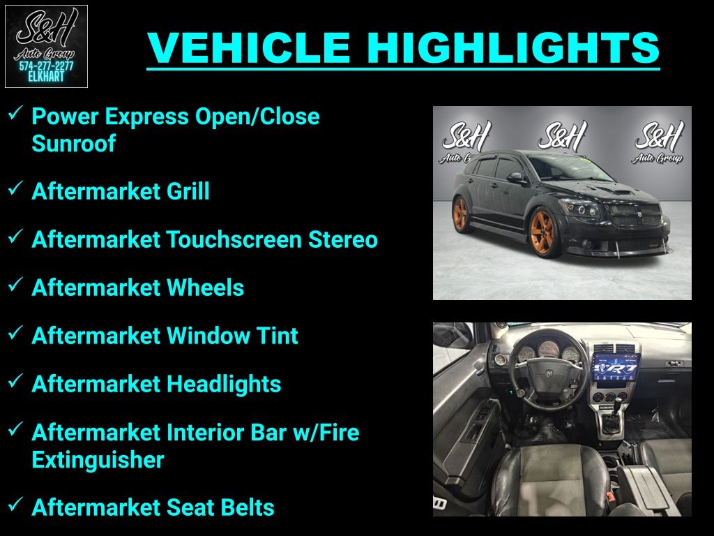 Clean Carfax. Brilliant Black Crystal Pearlcoat 2008 Dodge Caliber SRT4 FWD Getrag 6-Speed Manual 4D Hatchback 2.4L 4-Cylinder DOHC 16V Turbocharged 19/27 City/Highway MPG. At S & H we pride ourselves on our outstanding customer service, our transparent sales process and our rock bottom prices! Recent Arrival! 19/27 City/Highway MPG. Enjoy the benefits of certified service near Mishawaka IN, South Bend IN, Niles MI and Edwardsburg MI at the S&H Motor Sales Service Center. If you're anything like us, you love the feeling of driving a preowned car, and you want your car to feel like new for years and years to come. Fortunately, one of the best ways to ensure that, and avoid costly repairs in the future is to keep up with your manufacturer-recommended maintenance. And with years of preowned service expertise under our belts here at S&H Motor Sales, there's no one better equipped to serve your car care needs than we are.