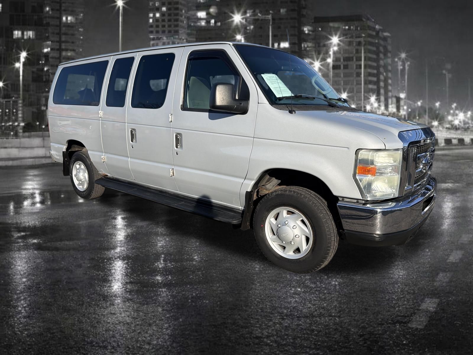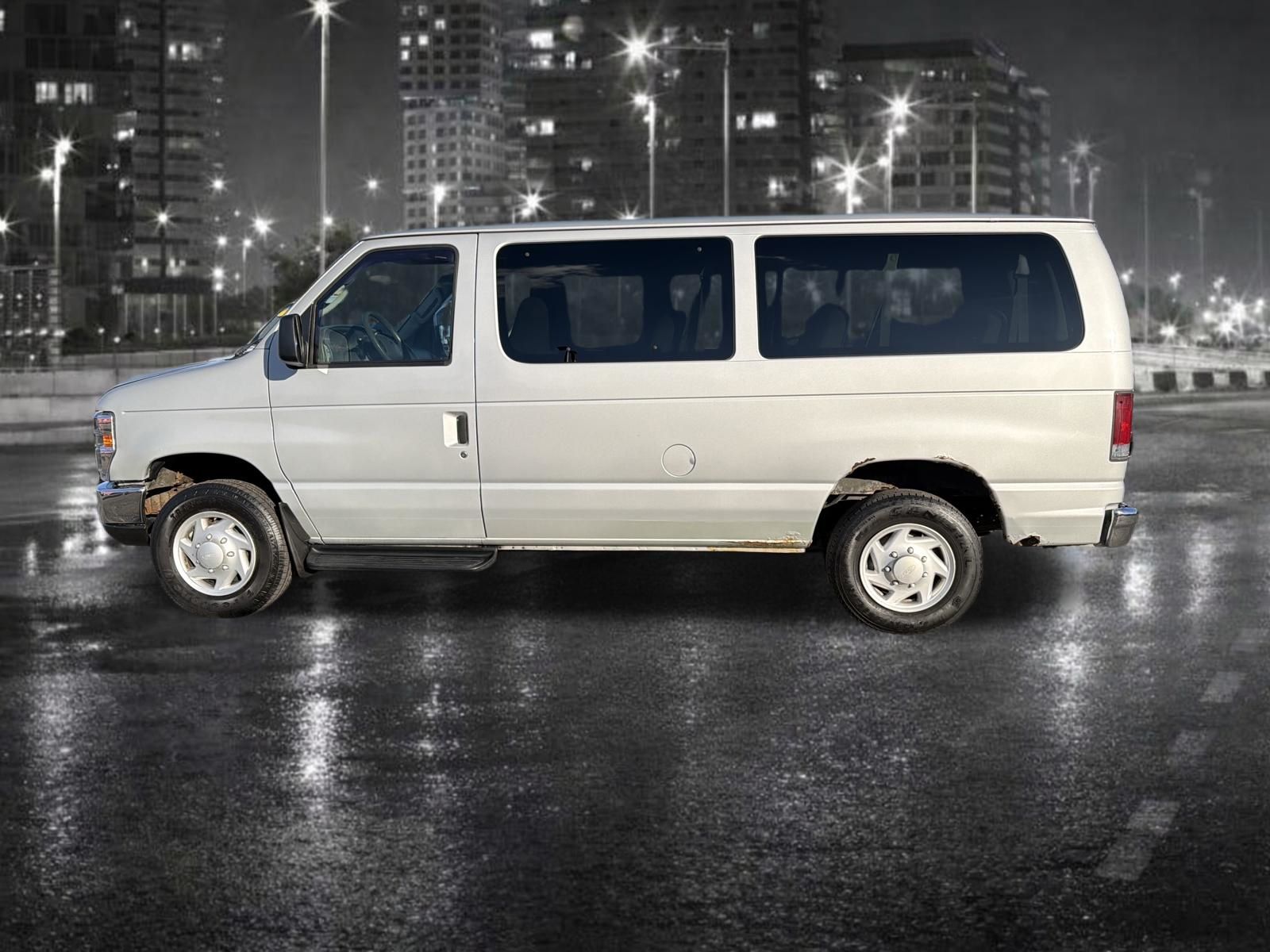 White 2008 Ford E-350SD XLT 5.4L V8 EFI RWD Passenger Van 4-Speed Automatic with Overdrive. ABS brakes, Electronic Stability Control, Low tire pressure warning, Traction control.